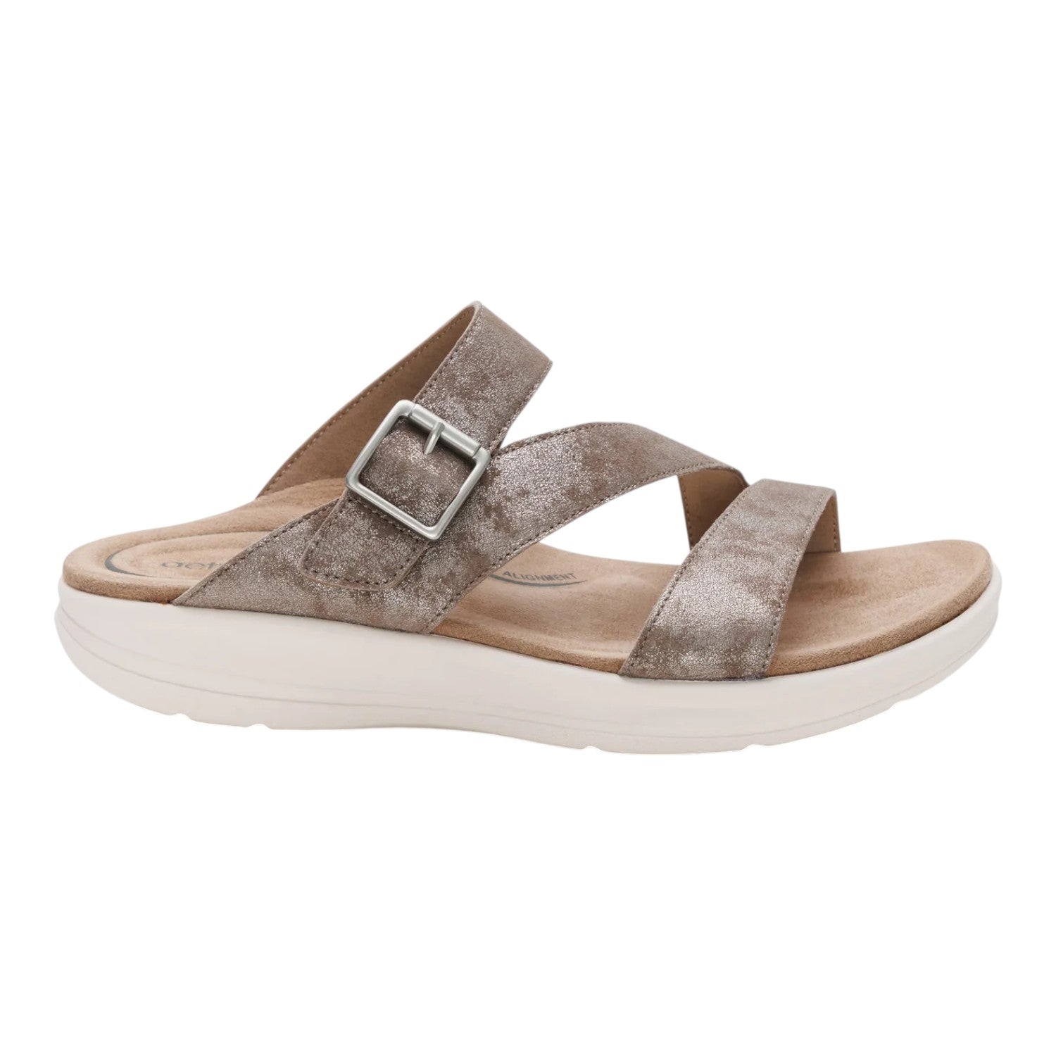 The Jenny's premium leather upper delivers a refined, put-together look that elevates it above typical casual slides. A medial side gore adds natural flexibility and accommodates varying foot widths throughout the day, while the hook-and-loop closure allows for precise, personalized fit adjustment every time you slip it on. Designed with data from over 50 million global foot scans, every element of the Jenny is anatomically positioned to support your body from the ground up.