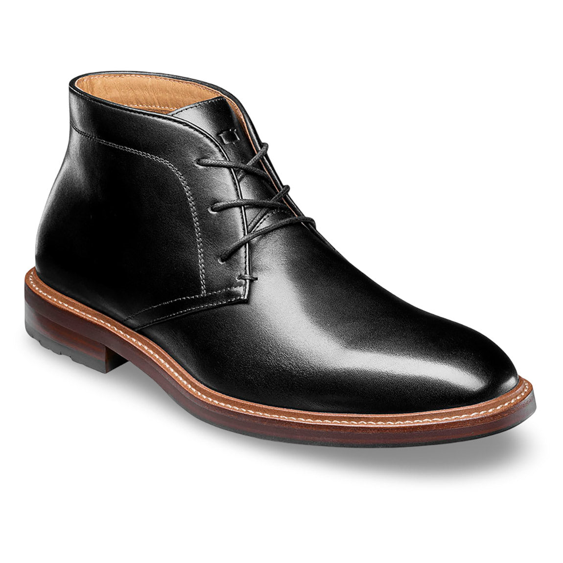 The Florsheim Anthem Plain Toe Chukka Boot has the classic three eyelet design with a modern silhouette and a stacked heel. Made of rich leather or soft suede, wear them with jeans and a sport coat for work, date night, or a weekend away.