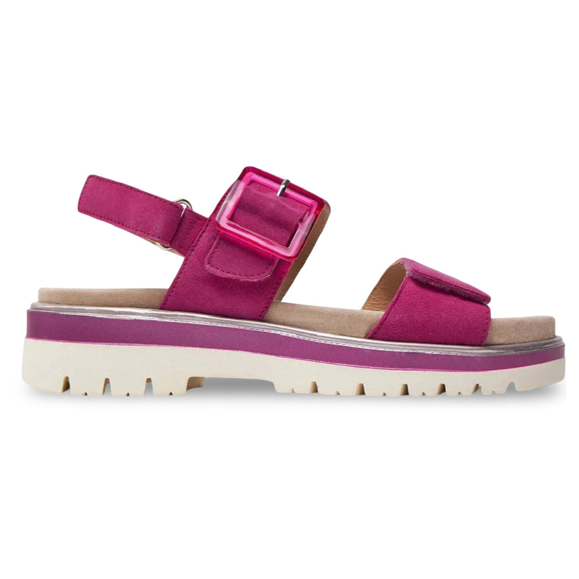 Experience all-day comfort and support with the innovative HighSoft cushioning technology embedded within this supple suede sandal. Crafted with flexibility in mind, its design features adjustable hook-and-loop straps for a personalized fit. The combination of a leather upper and lining with a synthetic sole ensures both durability and style.
