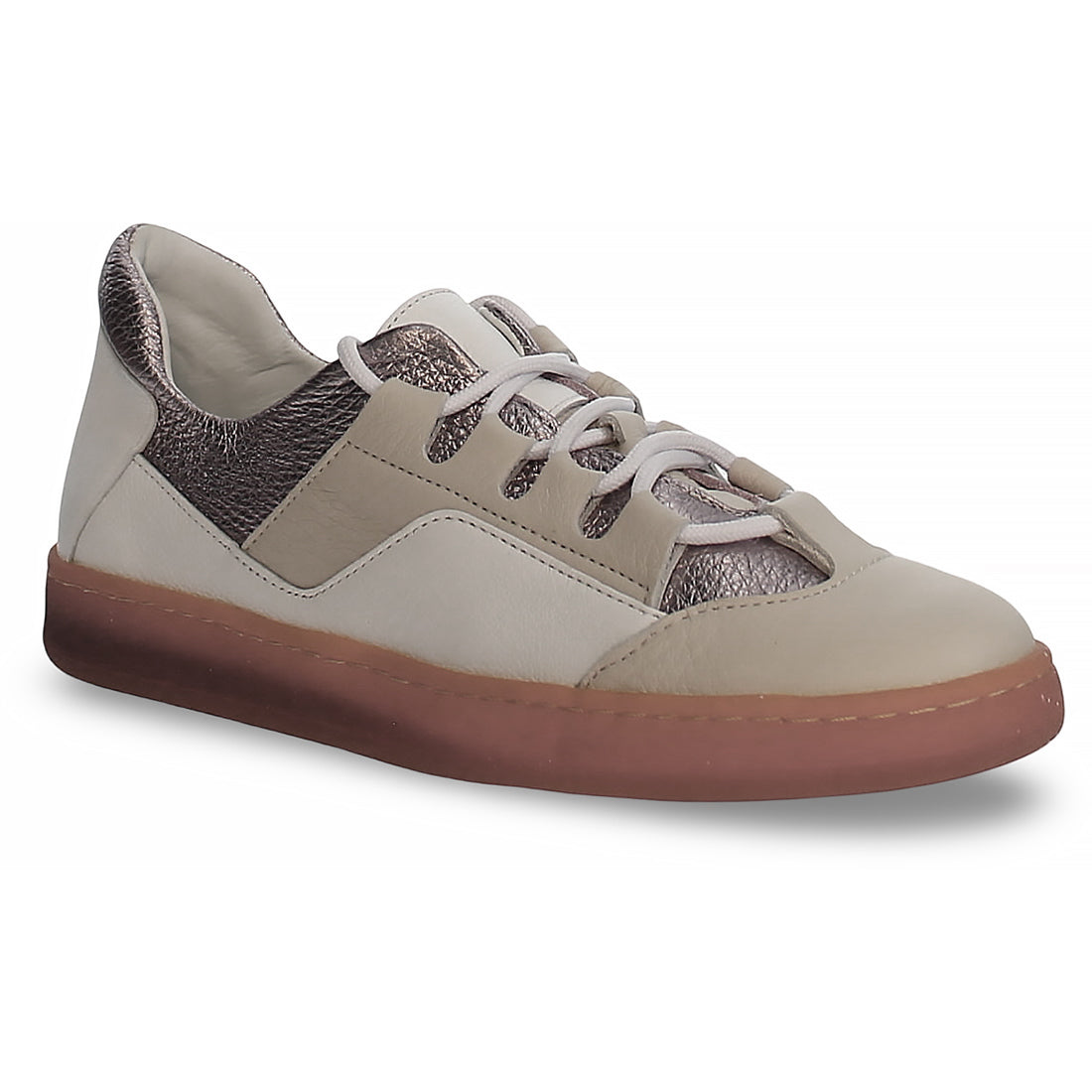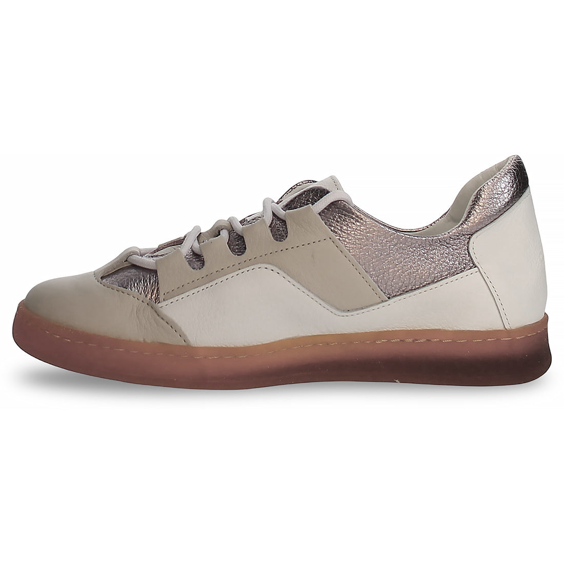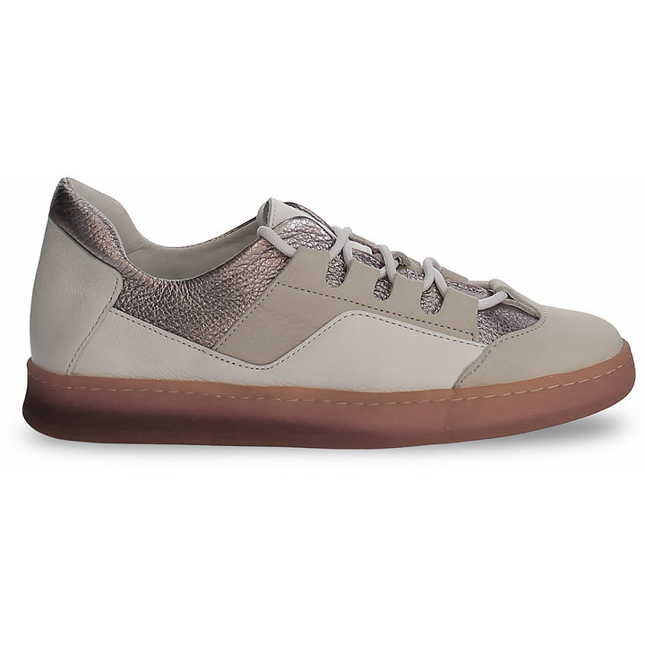 Low-top lace-up sneakers plain full-grain calfskin and marbled nubuck leather multicolor beige-white-orange_sabana-white-cota 1,0 cm flat sole in Lactae Hévéa® miel insole in plain white leather