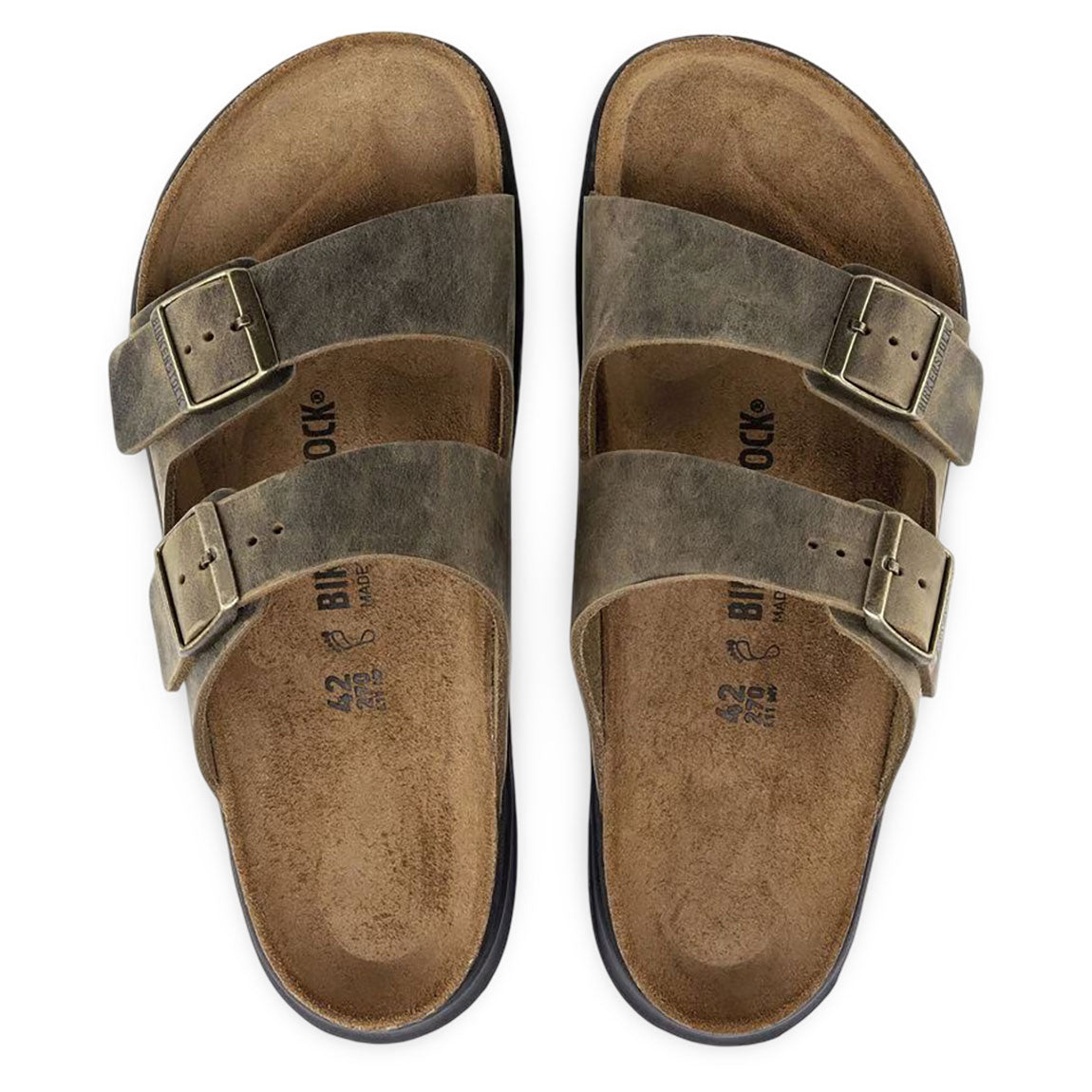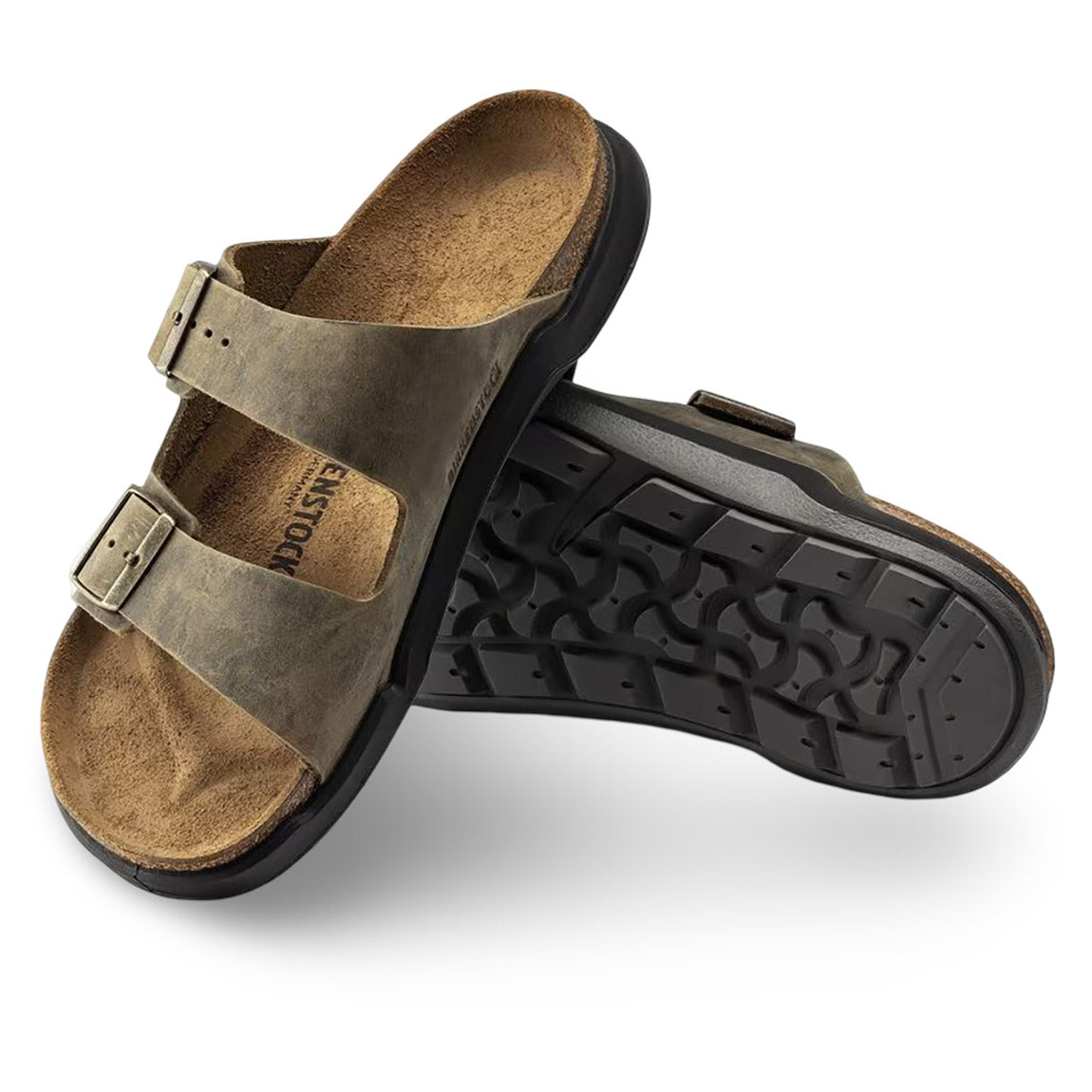 The Arizona sandal, retooled for everyday adventure. A PU sole is durable and flexible, with a rugged pattern for enhanced traction so you can go off the beaten path if you want to. An oiled leather upper takes on a heritage finish the more you wear it. With a contoured footbed that supports you on the go.