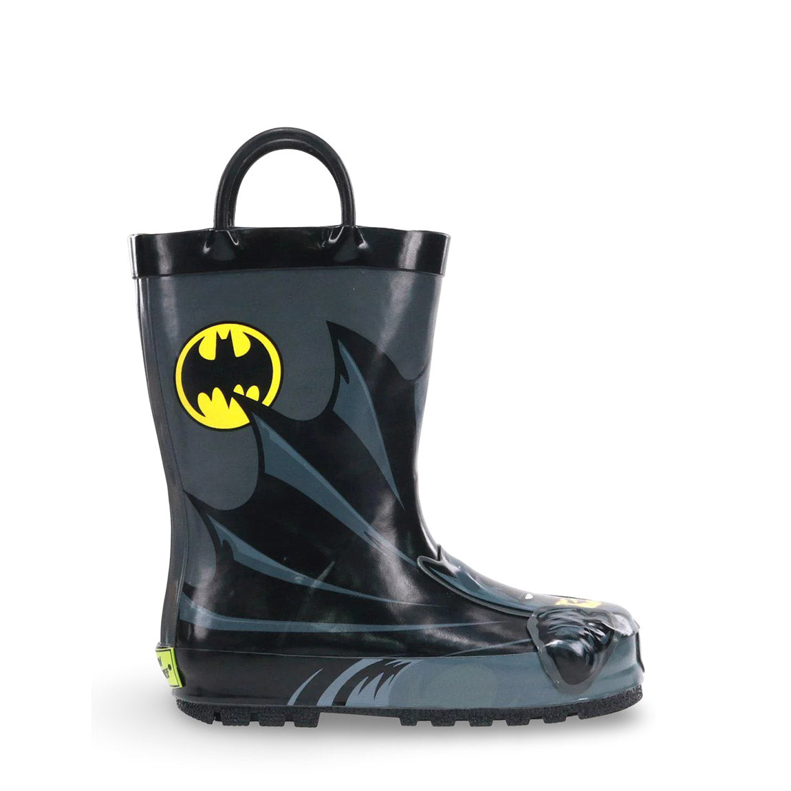 Get in character with these Western Chief kids’ Batman rain boots for little superheroes. Waterproof rain boots with two handles make it easy for kids to pull-on and off and moisture-absorbing cotton linings make sure to keep your little one dry and warm. Don't forget the matching coat and umbrella!