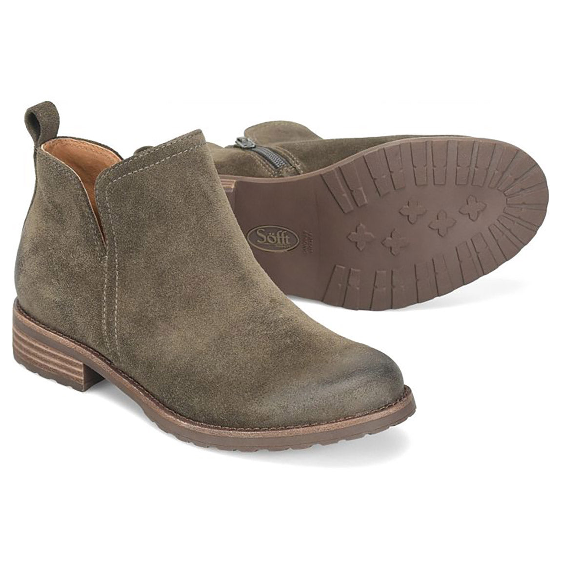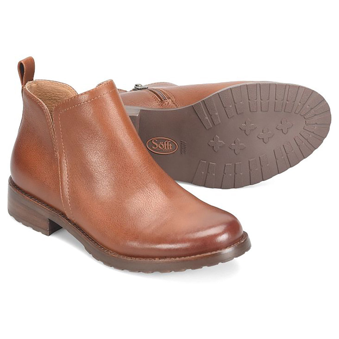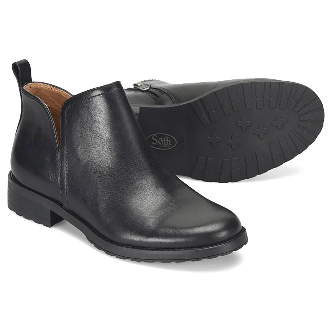 Side zipper Soft microfiber lining Leather-lined footbed, cushioned at ball and heel, with arch support Flexible, slip-resistant TPR outsole Stacked heel Heel Height: 1 1/4 inchesAQUA Söfft Weatherproof - Waterproof full-grain leather or waterproof suede combined with a seam-sealed construction. Leather Lined Footbed - Soft leather inside the shoe’s upper provides natural durability, breathability and comfort. Arch Support - Built-in high-density foam at the arch provides shock-absorbing cushioning and added stability for all-day comfort. Side-Zipper - Designed for ease of entry, our side zippers provide quick on-and-off convenience.