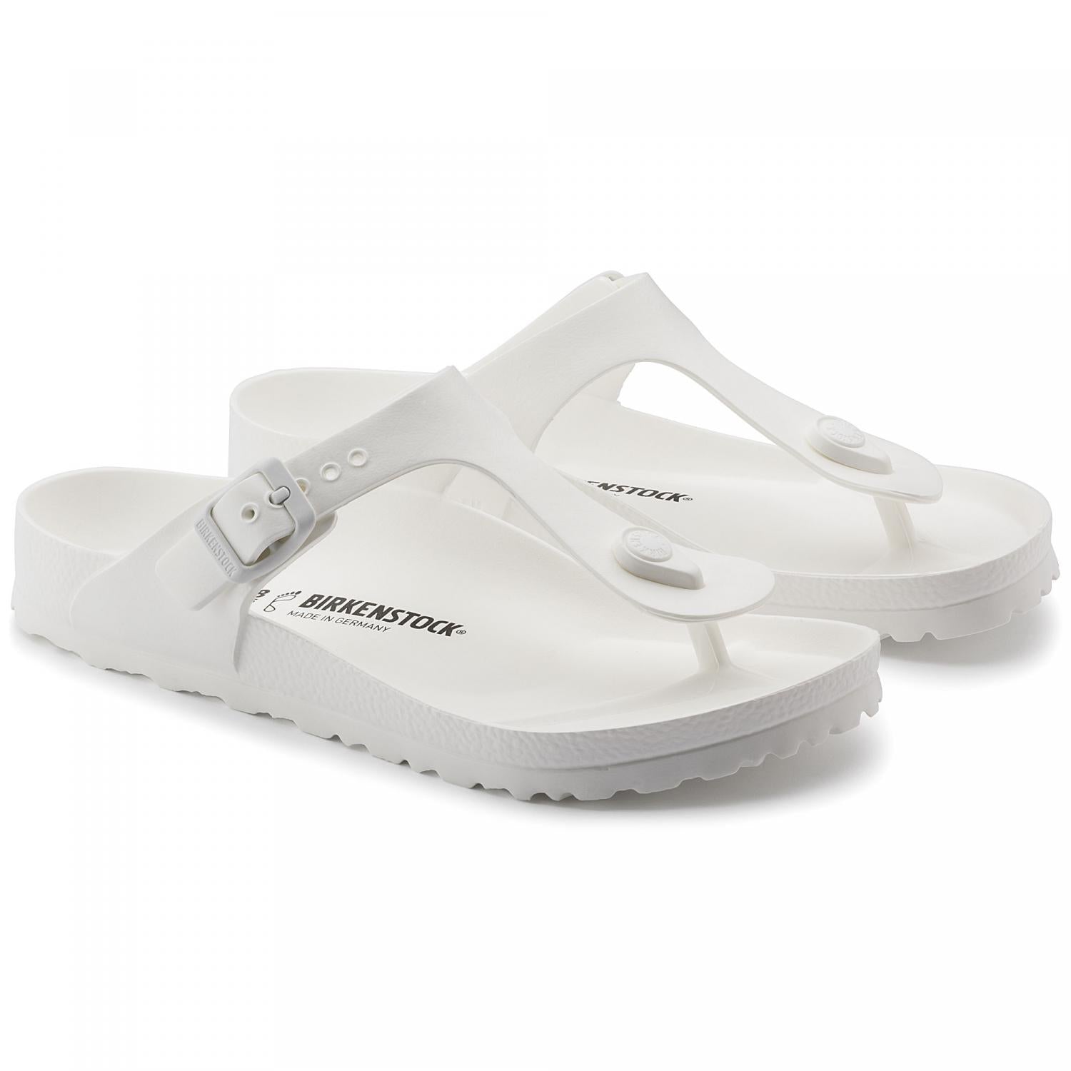 The BIRKENSTOCK Gizeh is our classic sandal. Modeled on the cork original, this sandal is made from ultra lightweight and highly flexible EVA. These colorful sandals are shock-absorbent, waterproof, and wear-friendly. Wear them at the beach, in the garden, or in wellness and spa areas. It's the perfect addition to your classic BIRKENSTOCK sandals.