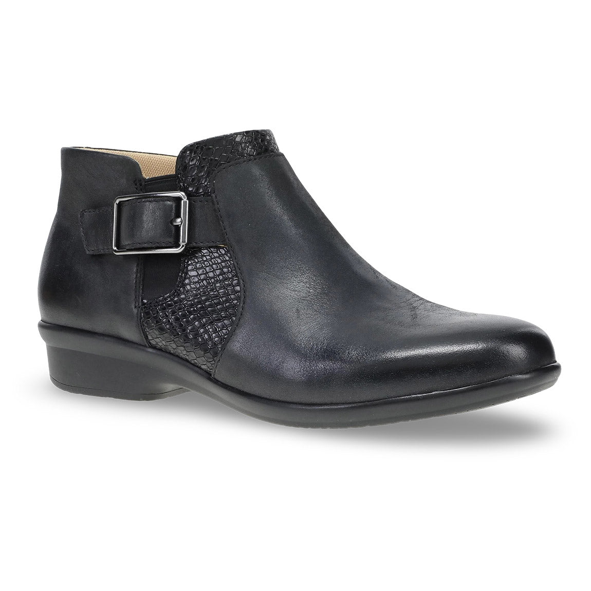 Elevate your look with our Carolyn bootie, featuring a textured inlay and a chic buckle for stylish upgrades. With a goring panel on one side, a side zip on the other, and a removable footbed with arch support, these low booties ensure easy entry and all-day comfort!