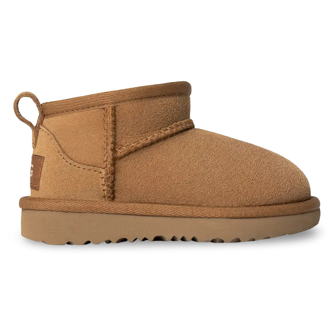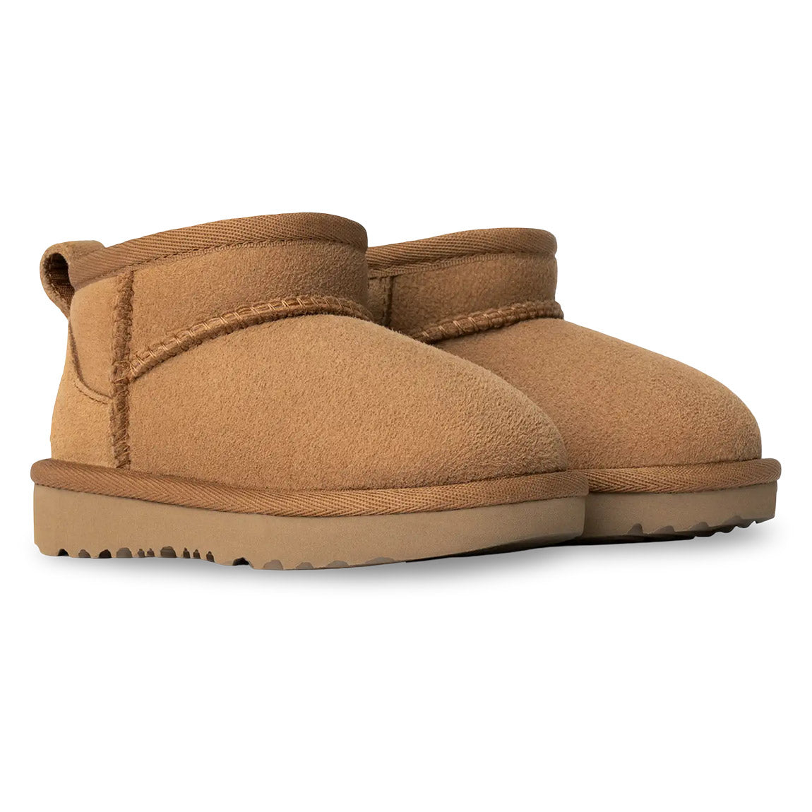 Our iconic boot has been scaled down in size, but not in style. Our Classic Ultra Mini features a lower shaft height to add easy on-off and enhanced versatility. Pre-treated to keep it looking better for longer, this Classic features everything kids love about the original: signature sheepskin lining, an ultra-soft UGGplush™ insole, and a flexible, lightweight sole made for all-day play. This style is available in sizes for the whole family.