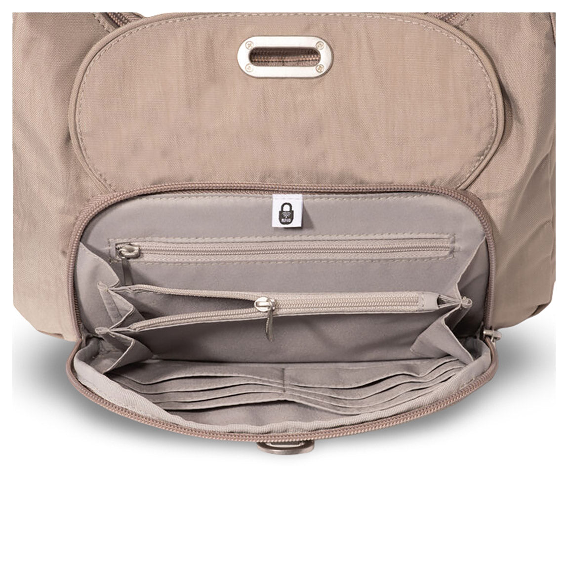 Made with convertibility in mind, this style can be worn as both a crossbody or a half moon shoulder bag. A sleek flip lock closure keeps the RFID-protected front wallet secure, and the adjustable crossbody strap helps you achieve the perfect fit.