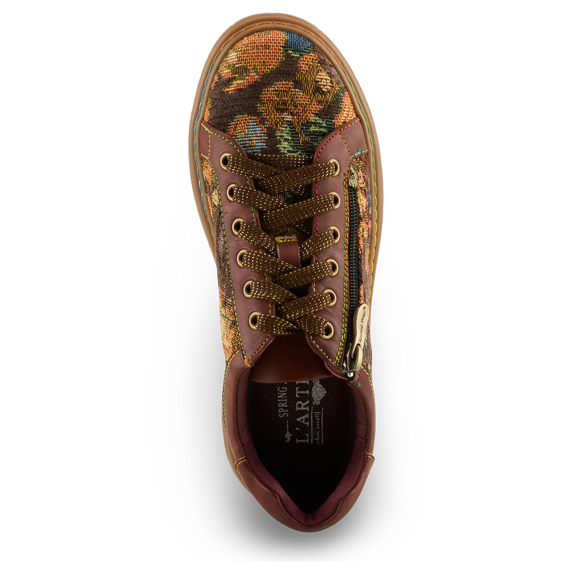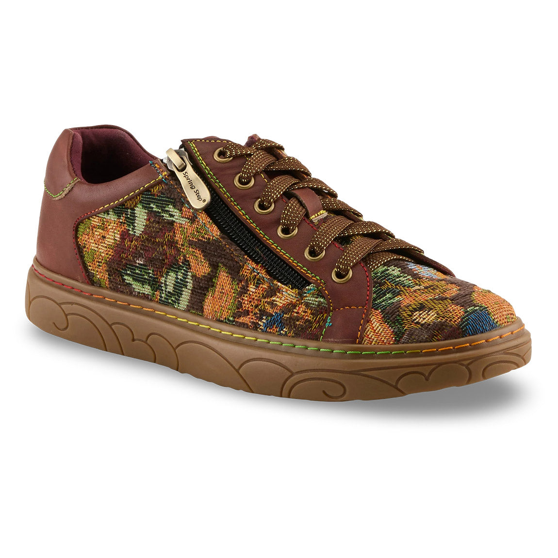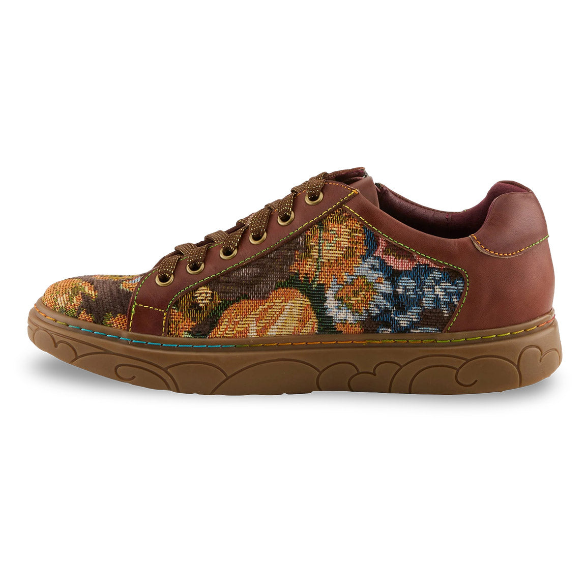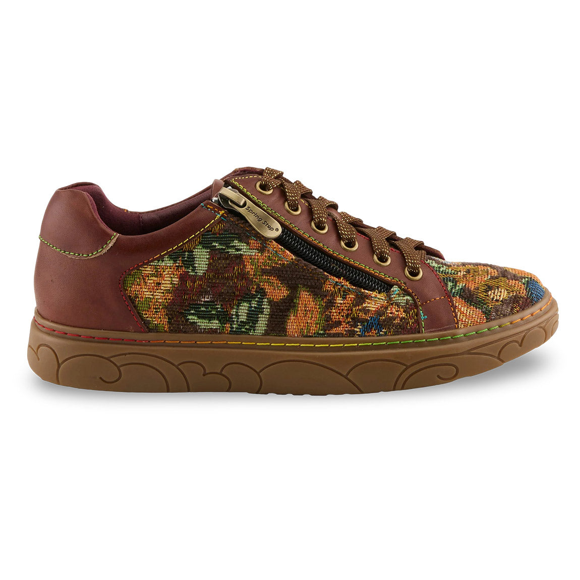 Elevate your sneaker game with a fusion of texture and artistry. This boho-chic sneaker features a unique leather and tapestry print upper, blending modern inspiration with vintage charm. Designed for effortless wear, it includes a side zipper for easy on-and-off and signature rainbow stitching for a touch of artisanal craftsmanship. Whether you're out for a casual stroll or making a statement, this comfortable and stylish sneaker is the perfect finishing touch to your wardrobe.