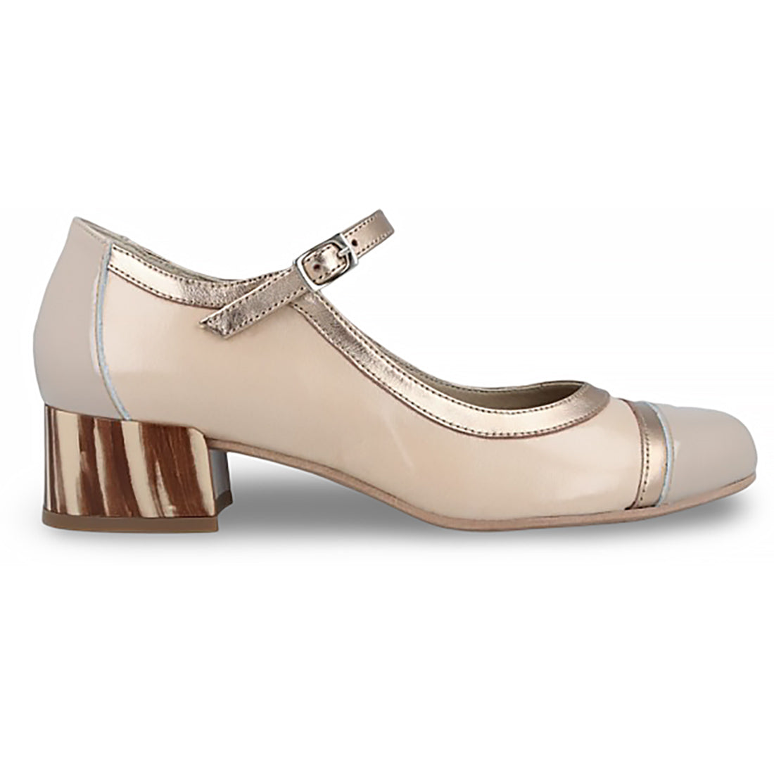 Romanticism and style when you combine your Frida with your most special outfits. The height of its low heel will add sophistication and elegance to a feminine and sophisticated look. The combination of textures and colors will make Frida an original and very special shoe. The heel design follows the latest trends in metallic finishes, elevating your look and achieving an unparalleled charm. Ideal for a formal event or more special occasions where you want to add elegance and subtle glamour.