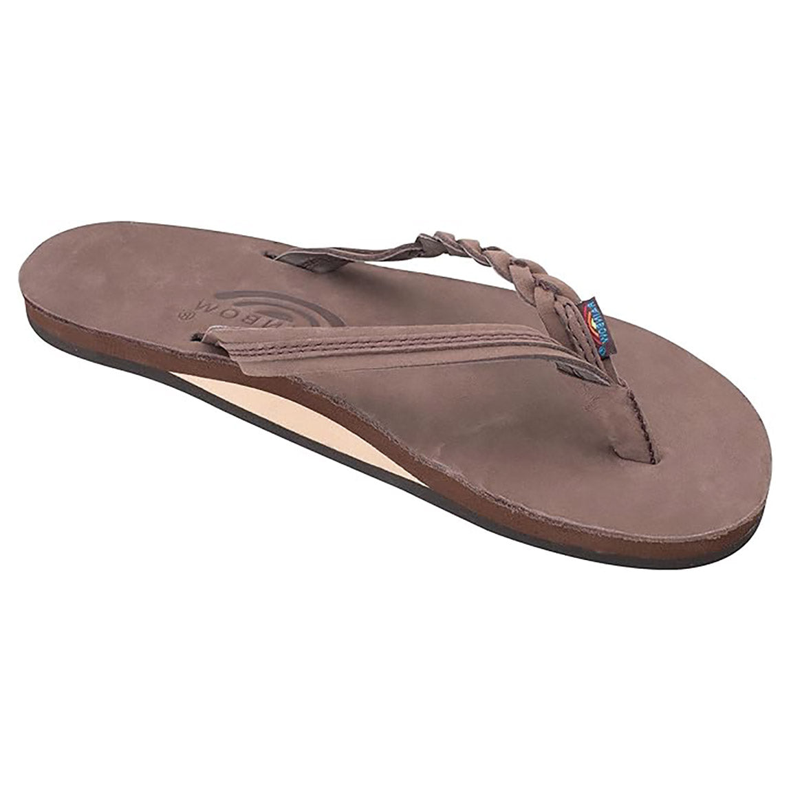 The Flirty flip flop from Rainbow features braided leather straps and a memory foam insole that molds to the contours of your foot, providing a comfortable, customized fit.