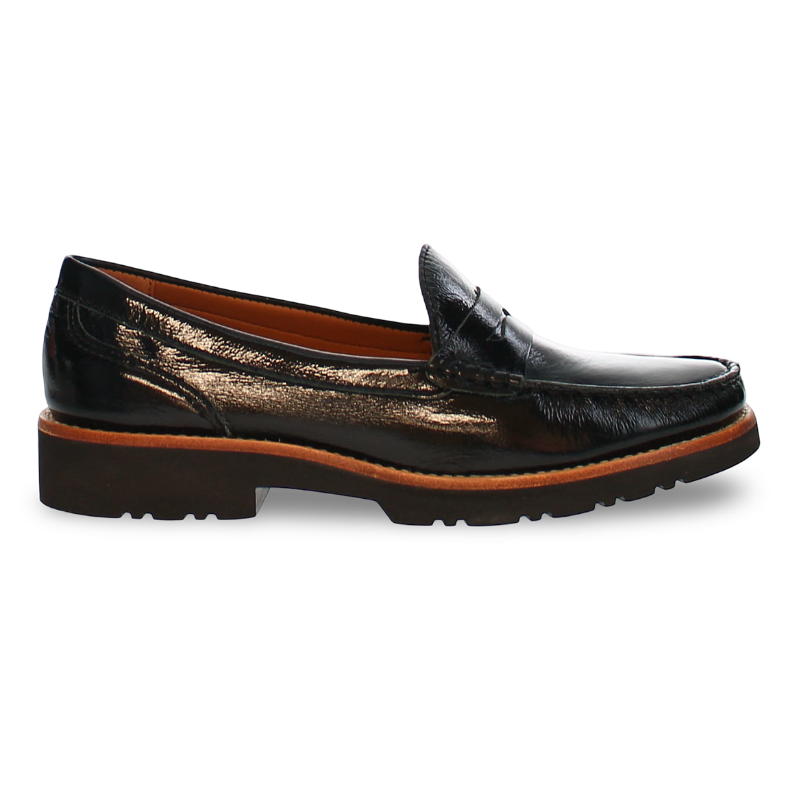 The classic penny loafer meets fashion with the Genoa by Studio C. Soft, gorgeous nubuck or patent leather uppers on an updated platform lug sole.