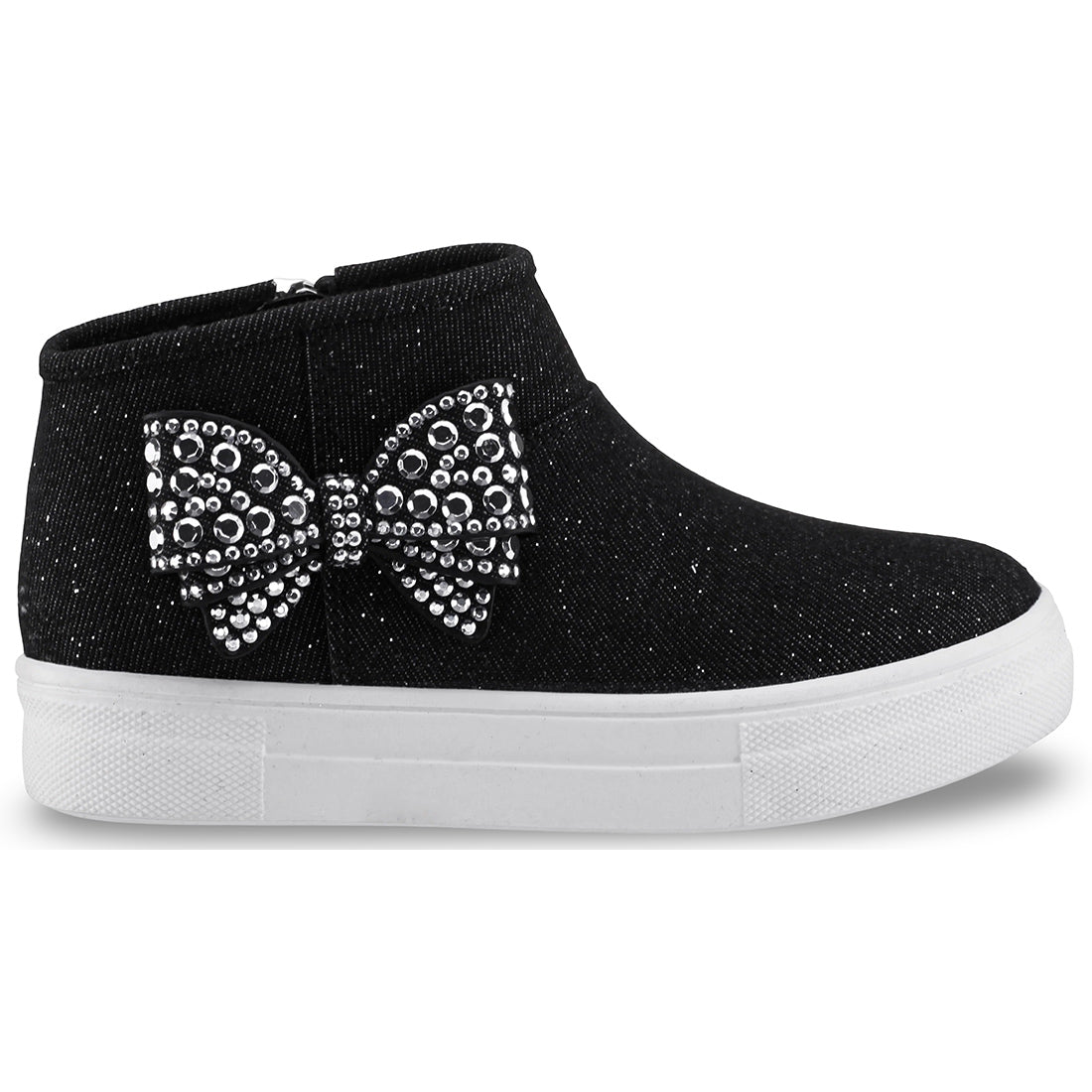 Sparkle meets street style in GWENNY by Nina Shoes, a fashionable girls high top sneaker with just the right touch of glam. This hybrid sneaker boot features a dazzling rhinestone bow that adds standout shine, while the inside zipper makes getting ready quick and easy. With a cushioned memory foam insole and a flexible non-slip sole, GWENNY delivers comfort, sparkle, and cool-girl vibes all day long.