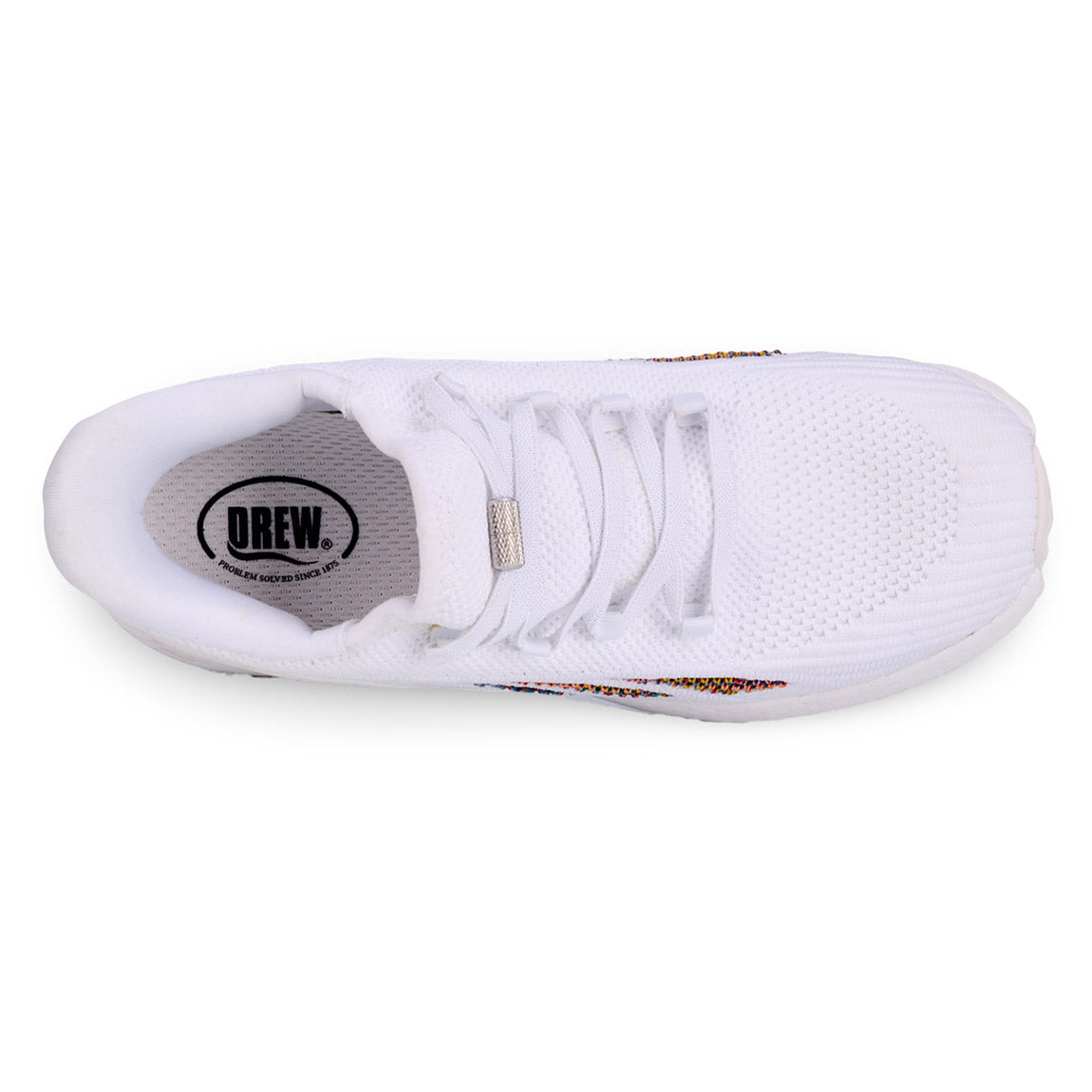 No Hands! No Hassle! No Bending! No Tying! NO KIDDING! Complete your look with the sporty silhouette of the Drew Halo comfort sneakers. Halo athletic shoes for women feature a lightweight mesh upper and easy, no hands entry. With the metal clasp you can unscrew and adjust to your liking ( can be cut, tied like a normal lace or you can knot each side at the hole and let the shoe lace hang down the sides. Then just step in and go! Tested over 50,000 times and the heel pops right back up every time! Complete with two removable insoles, including Drew's Walk Right Technology insole for added or double depth.