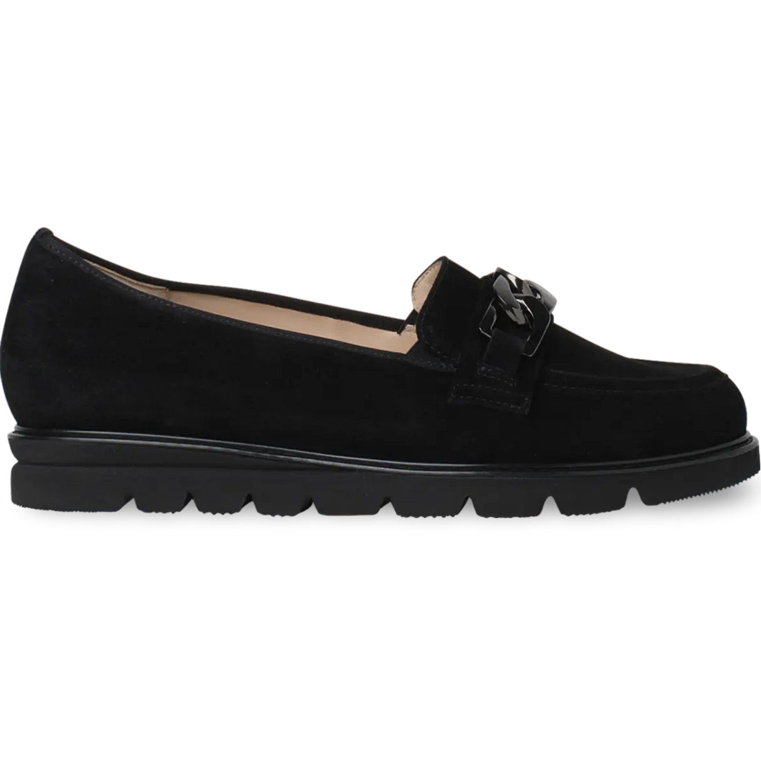 Slippers and loafers have become indispensable in the fashion world. So our Pisa loafer in fullness H should not be missing from your wardrobe either. The high-quality materials, the striking sole and the removable footbed speak for themselves. The slipper offers the best fit thanks to snug-fitting elastic inserts and extra padding in the ball of the foot. The light sole with flex zone promotes the natural rolling of the foot. So nothing stands in the way of a long day on your feet. Soft velour leather in classic black - combined with a noble chain underlines your outfit, whether a floral summer dress or classic jeans. Whether in the office or with a casual look, with our Pisa loafer you are always well advised and comfortable all day long.