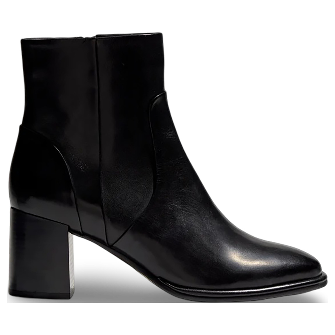 The ankle boot features a sleek silhouette crafted from Delice Black leather with accentuated stitching for a modern finish. Lined with soft textile for comfort, this boot is set on a durable rubber sole for reliable traction. A zipper fastening and a 65 mm block heel.