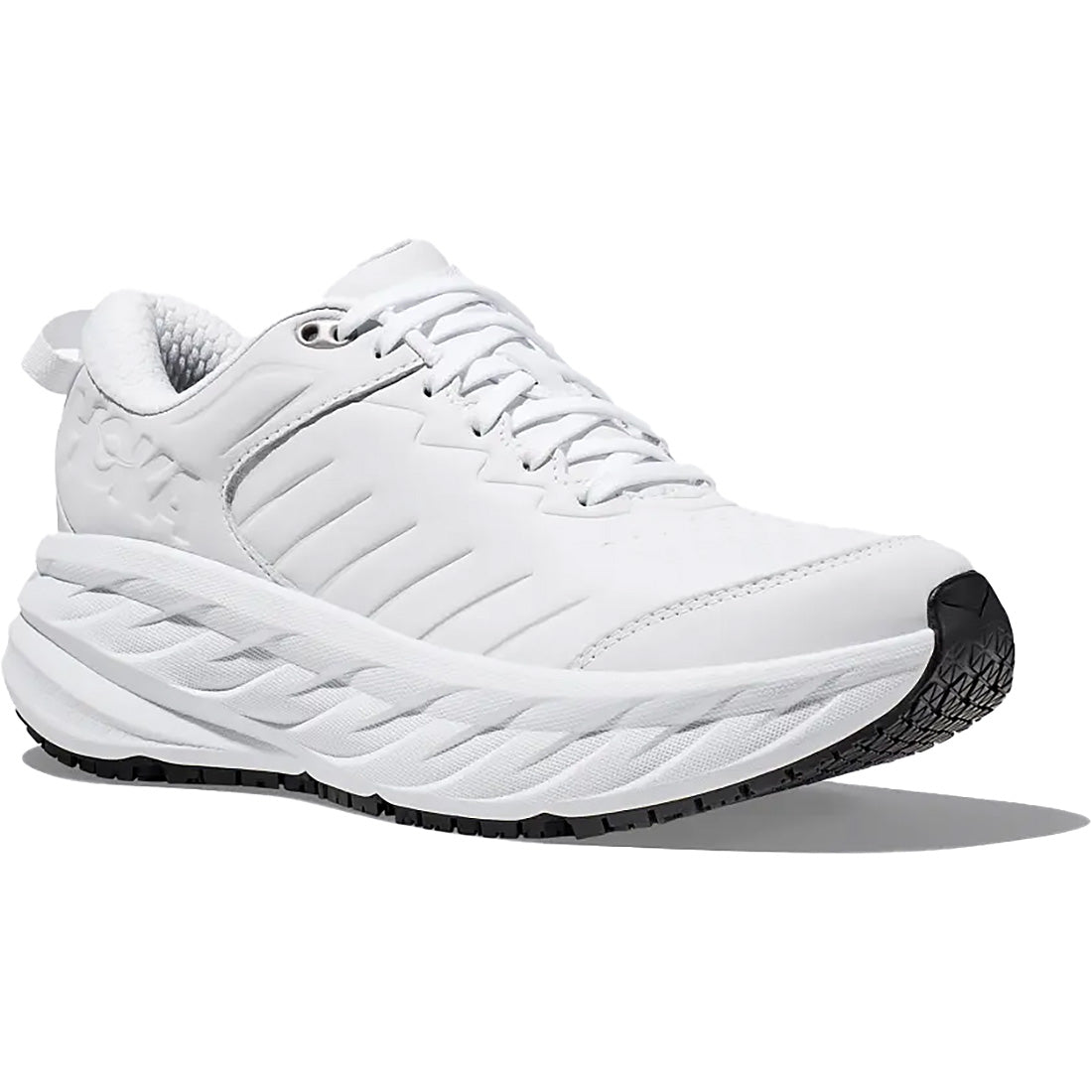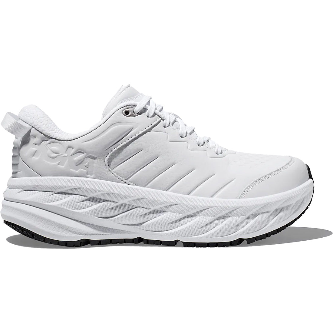The Bondi SR takes the most cushioned shoe in the HOKA road-shoe lineup and reworks the silhouette to handle the demands of daily life. Updated with water-resistant leather, a slip-resistant outsole and EVA midsole to ensure all-day cushion, this workplace warrior features an ultra-grip, full ground-contact rubber that stands up to the demands of the service industry and medical field alike.