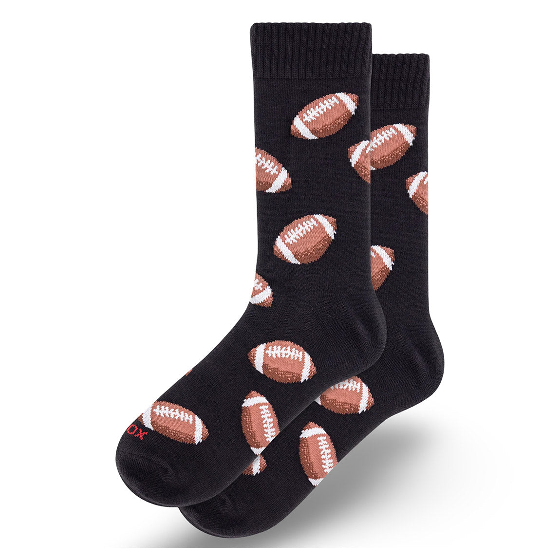 Tailgates. Sideline cheering. Fourth-quarter nail-biters. These socks bring football energy without needing a helmet. The classic pigskin print and denim blue background pair with any team jersey. And thanks to the ribbed cuffs, they are staying in place till post season...even if your favorite team doesn't.