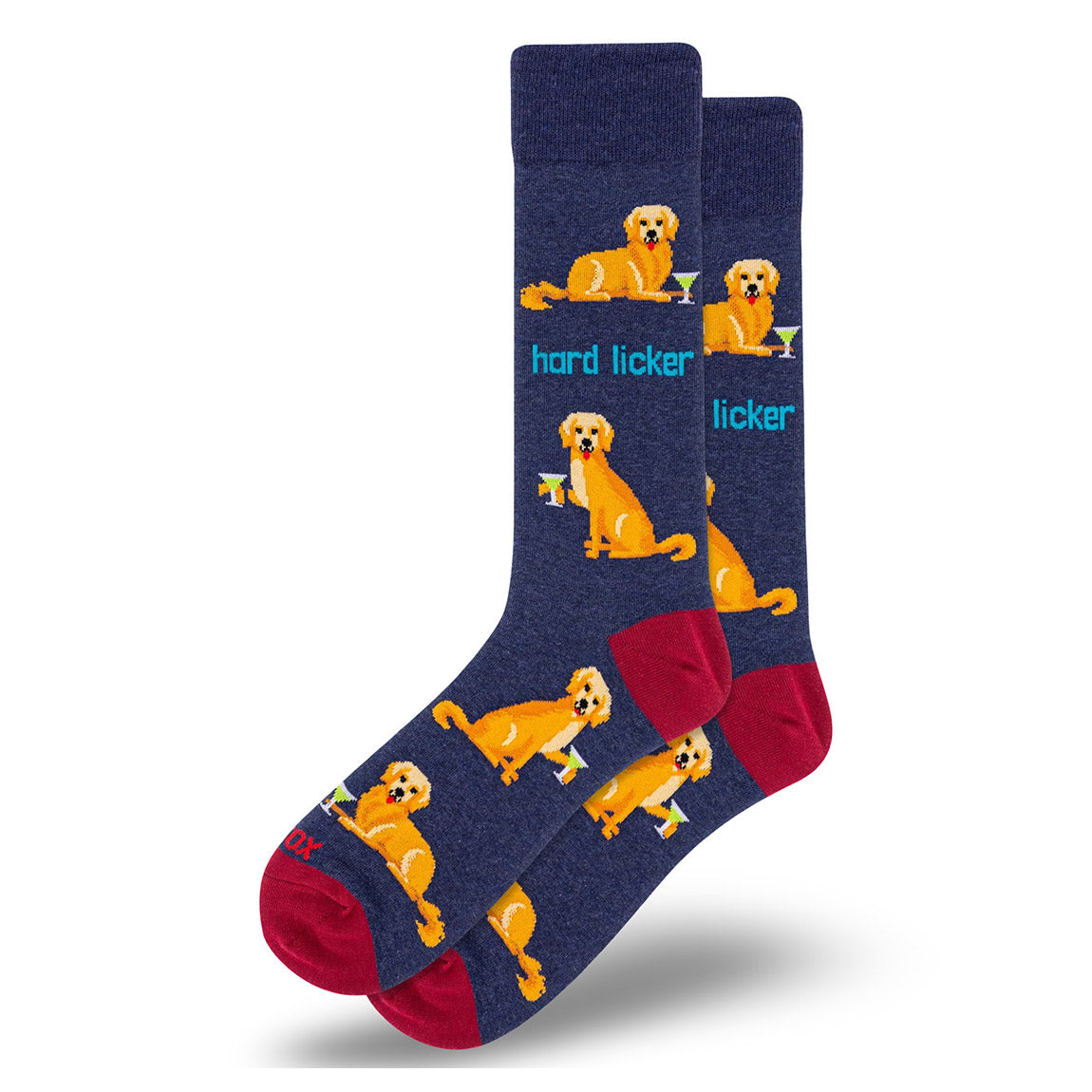Some dogs chase sticks. This one chases cocktails. Featuring a loveable golden retriever with a martini and a dangerously good pun, these denim colored socks are for anyone who enjoys their happy hour with a side of tail wags. Just don’t be surprised if you get compliments and thirsty looks.
