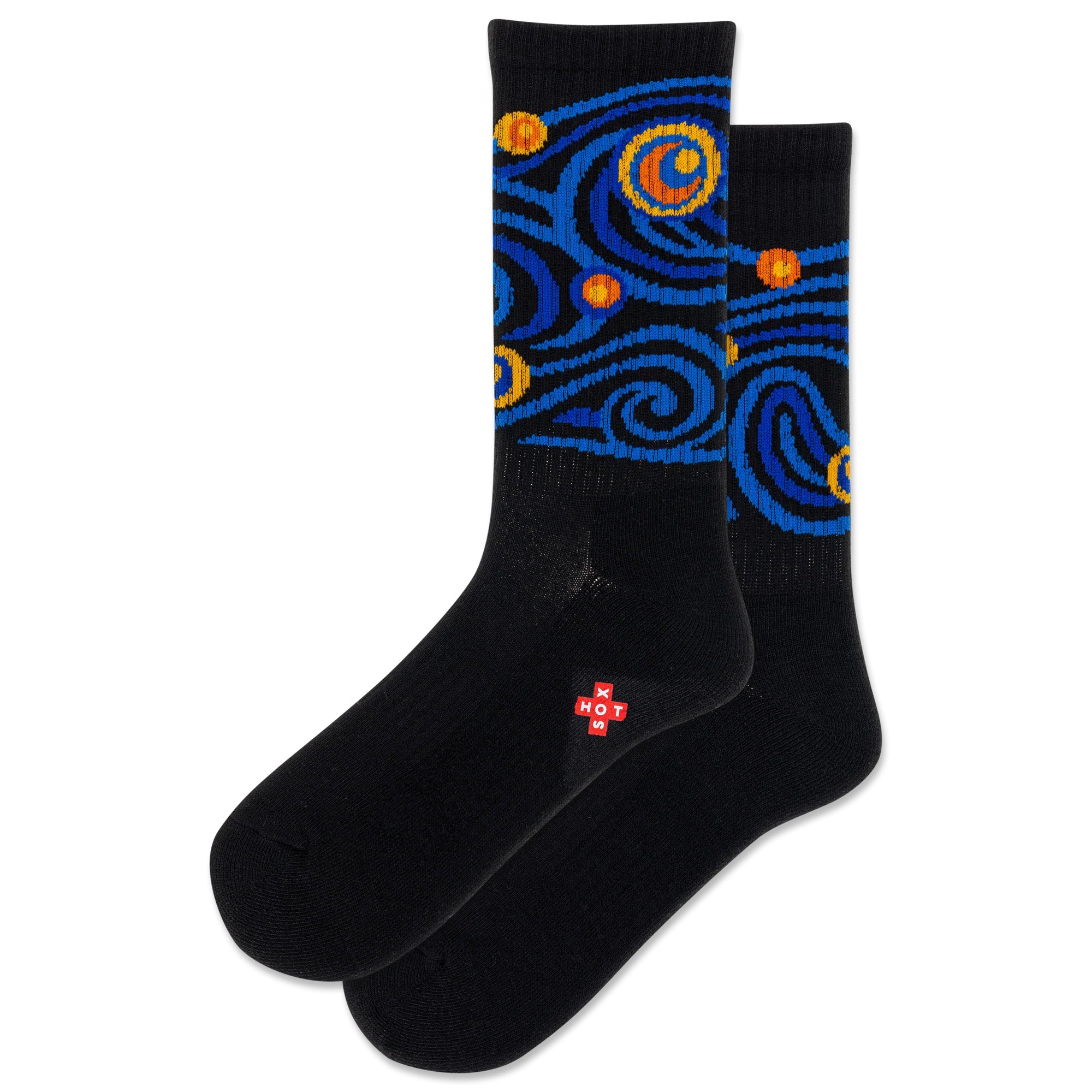 Step into a masterpiece with these active socks taking inspiration from the iconic Starry Night painting, crafted from recycled polyester yarns. Designed for ultimate comfort and performance, they boast a ribbed leg, arch support, and a half cushion sole, blending art and function seamlessly.