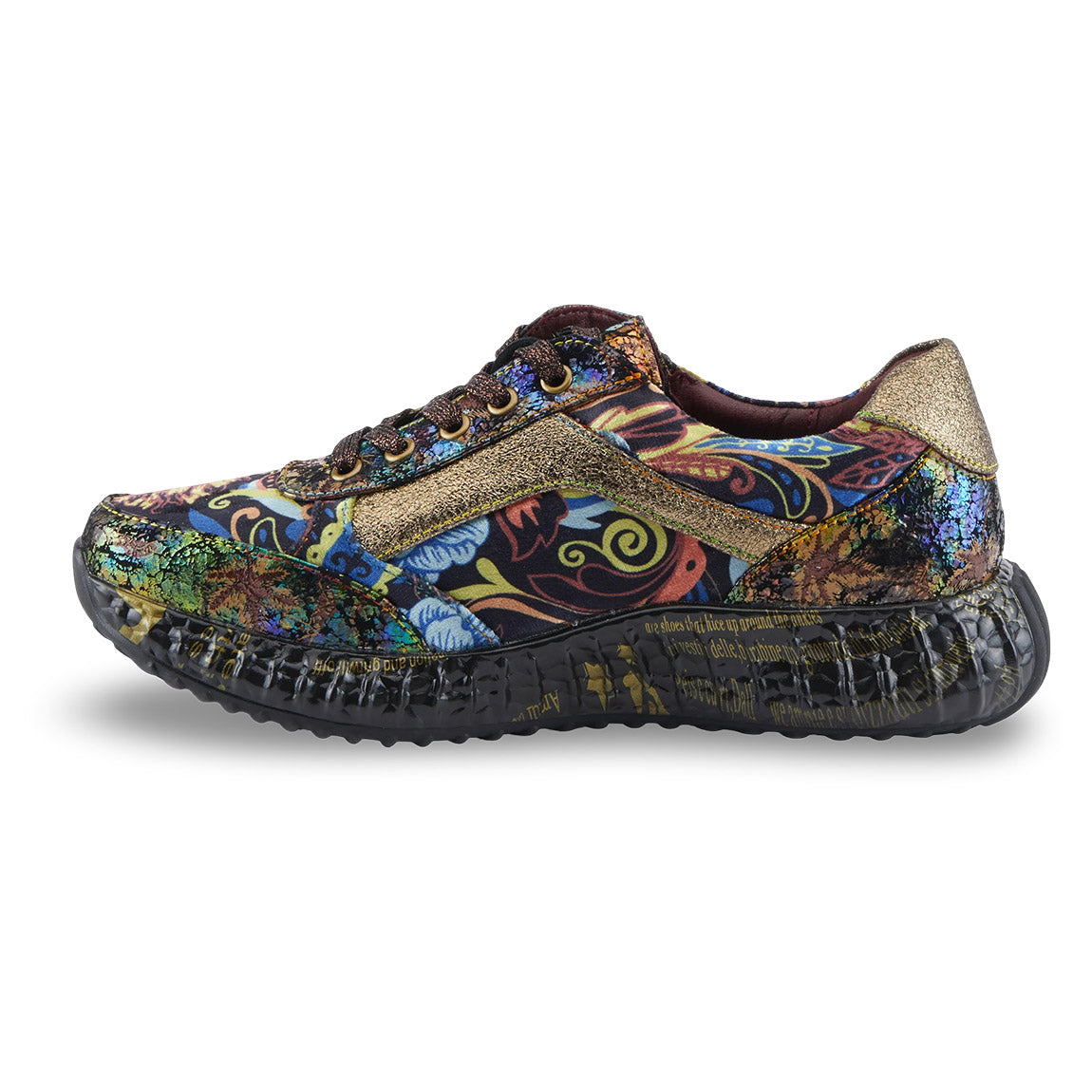 - Velvet and suede uppers with metallic lace accents for a luxe look|