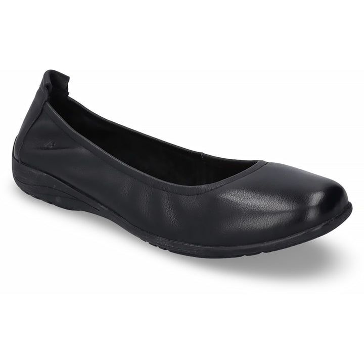 Flats are a wardrobe staple. Our everyday flat features a padded footbed for all-day wear. This version features a black sole.
