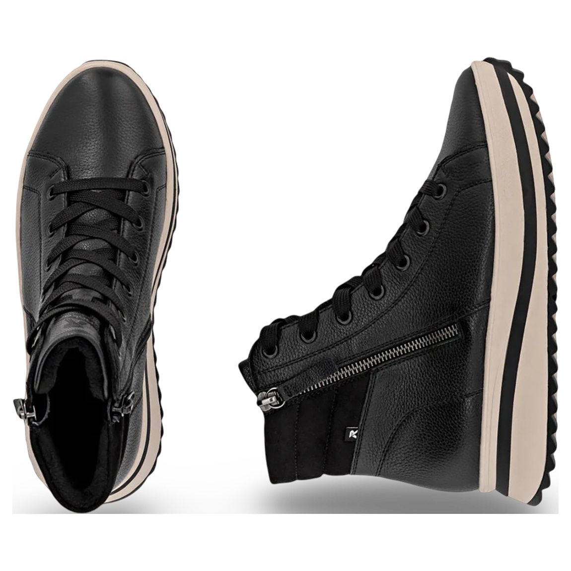 These Rieker lace-up boots are made of high-quality smooth leather. Top combination of zip and laces for quick and easy on and off. Padded, cushioning and removable insole. Soft and light velvet velour lining.
