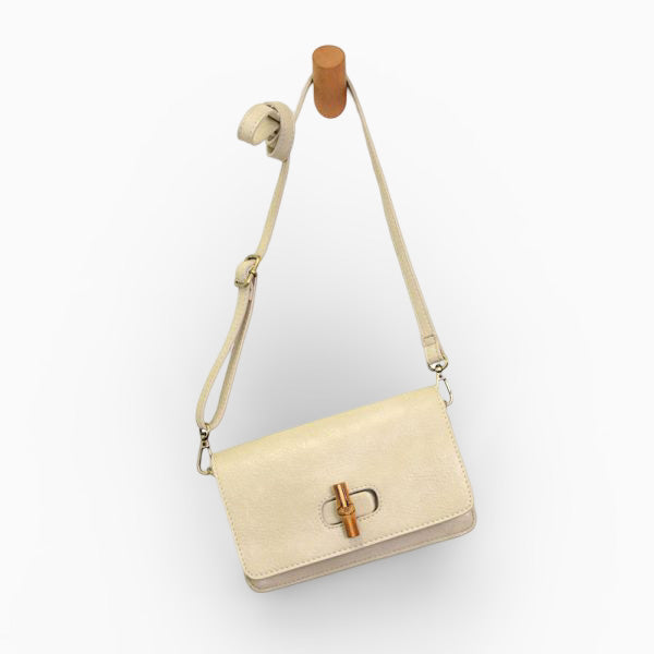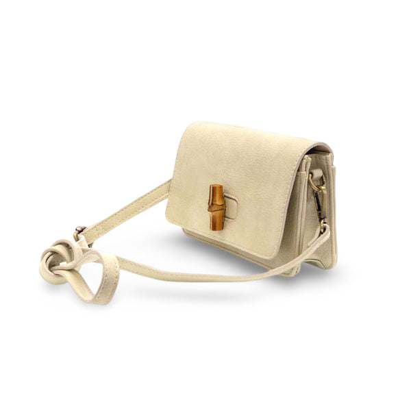 This petite clutch crafted in soft & lustrous vegan leather and accented with a genuine bamboo turn lock closure will add a sophisticated air to your warm weather style. Looks great with jeans or a dress and easily goes from day to night as the Bonnie can be carried as a clutch, a wristlet, or a crossbody bag with the included detachable wristlet and shoulder strap.
