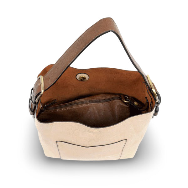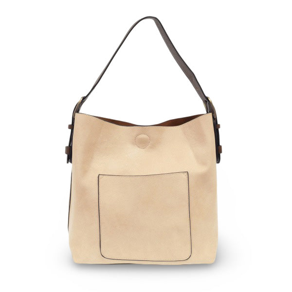 Equally timeless and modern, our best-selling classic hobo is made in rich vegan leather in beautiful colors always accented with neutral straps. This roomy bag accented with a large front pocket and a snap-in removable crossbody, has plenty of room to carry your needs in style.
