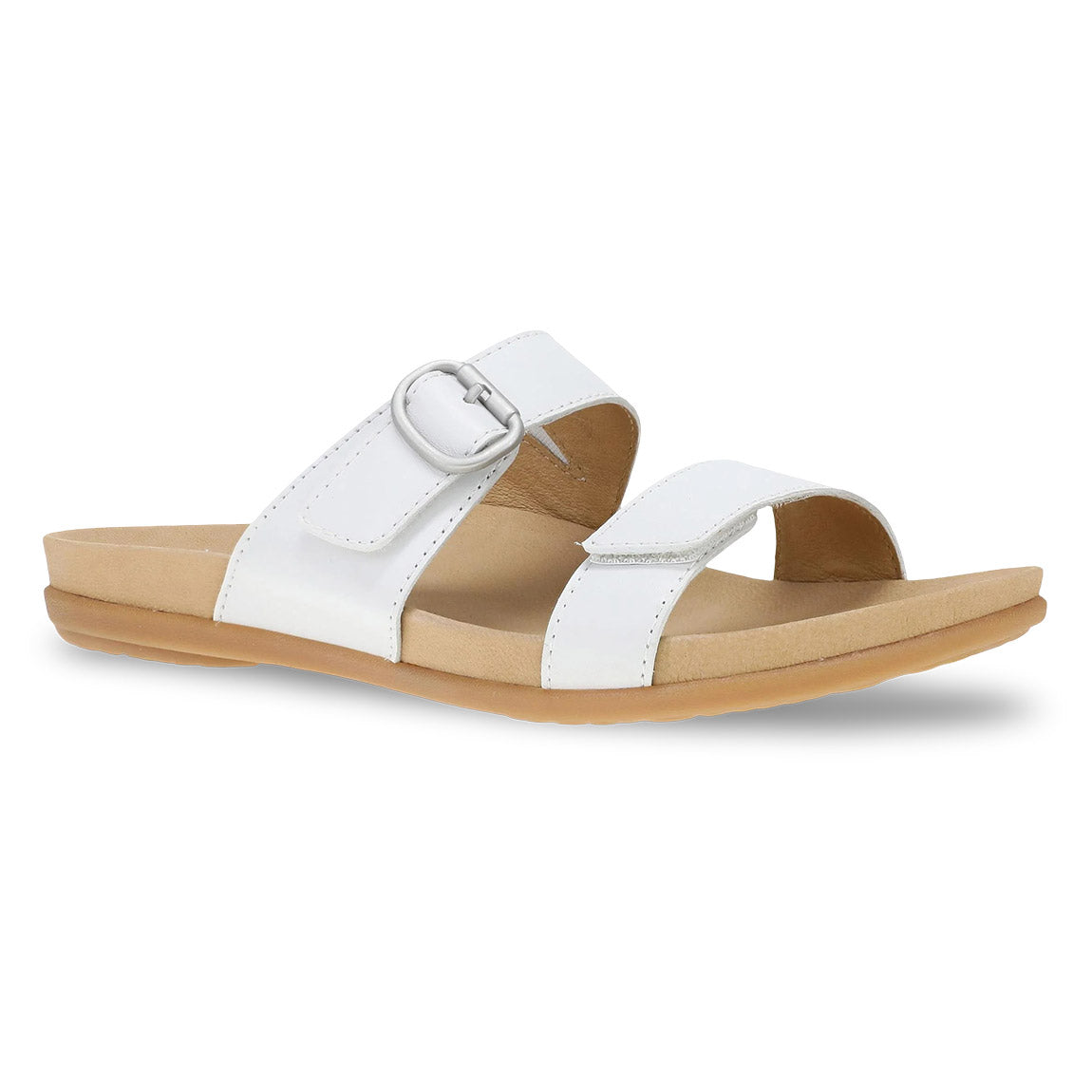 Step into support with Justine, a simple slide sandal made for both summer dresses and casual all-day wear.