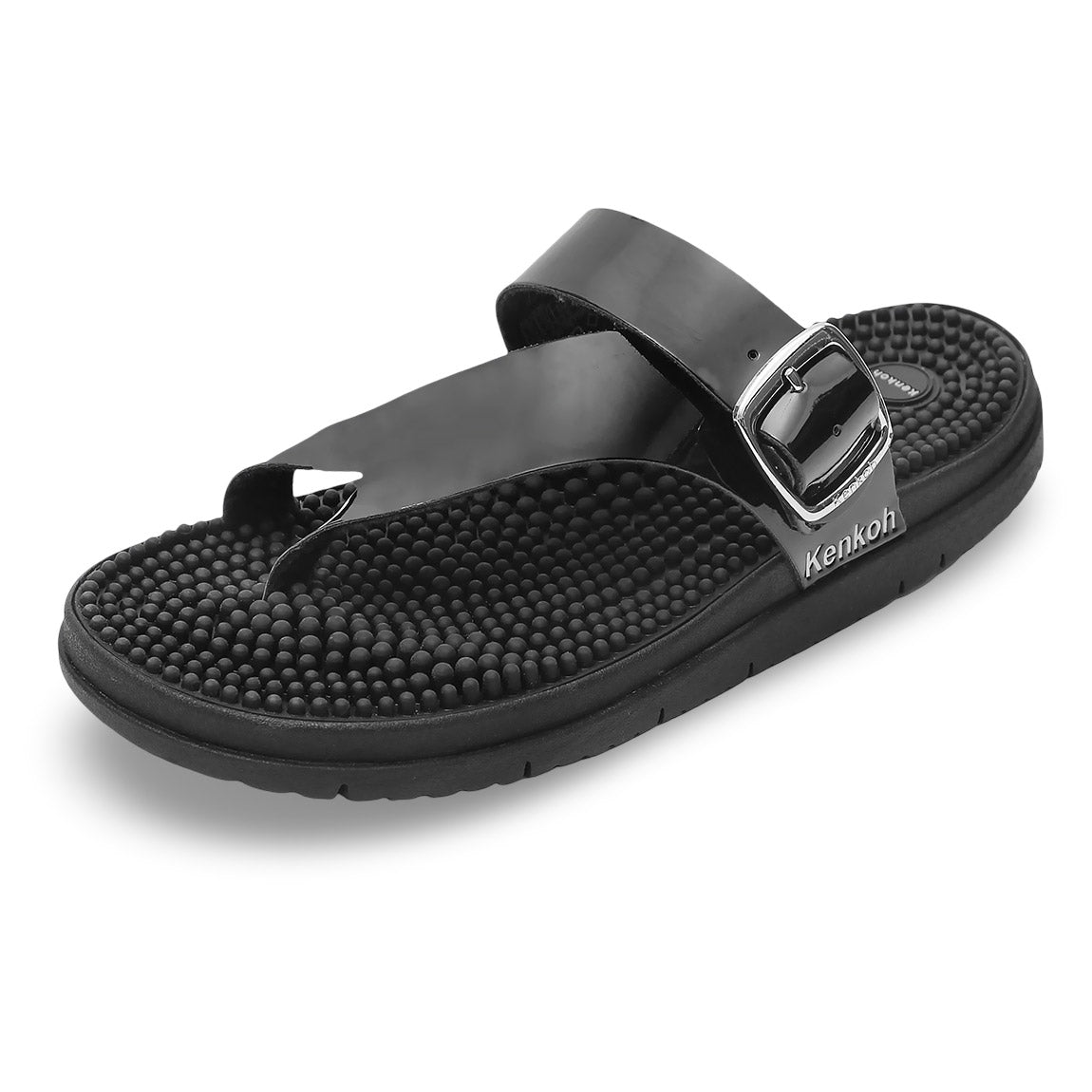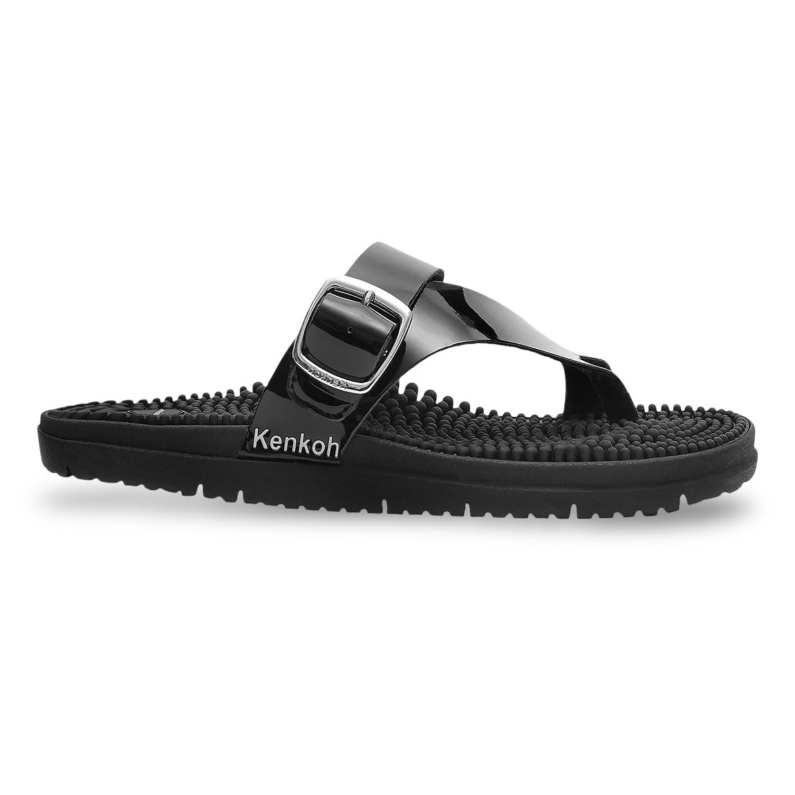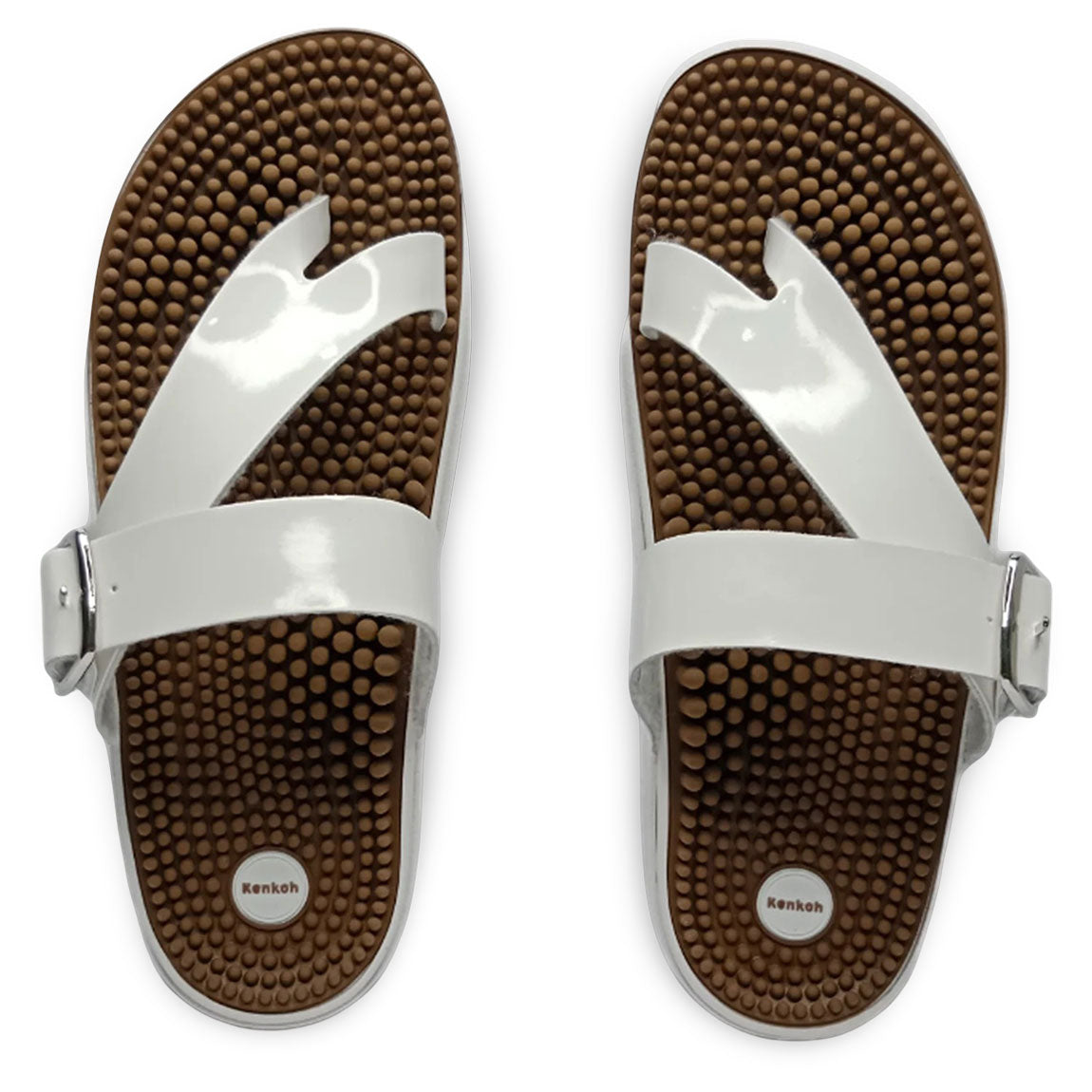 Discover the comfort and style of the "Nara Reflexology Thongs" by Kenkoh. Inspired by the historic beauty of Nara City in Japan, these thongs are as beautiful as they are beneficial. With a shiny metallic finish and adjustable double-crossed straps, they not only look great but feel great too.