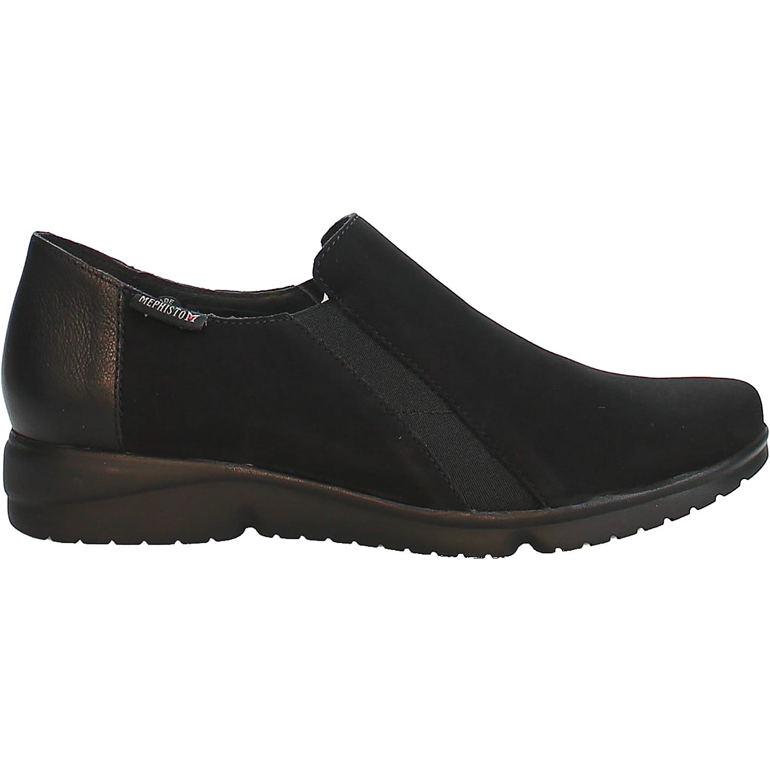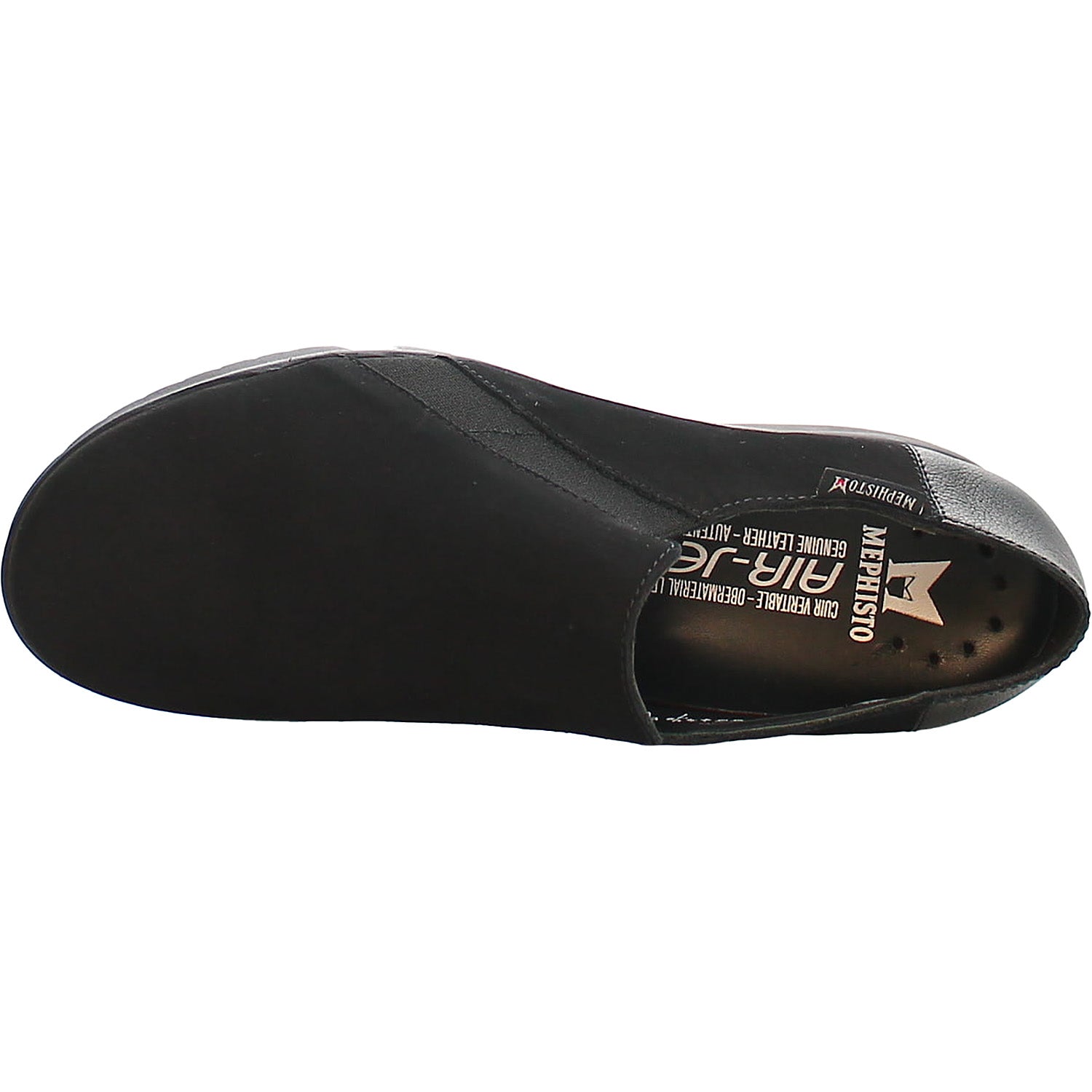 MEPHISTO ROMEA | Women Shoes Black Leather Nubuck. A very comfortable slip-on with a relaxed look. The SHOCK-ABSORBER, in the outsole, and the detachable insole, with integrated SOFT-AIR Technology, help to minimise impact for a gentle, effortless walk. Slip-on with elasticated inserts at the top of the foot for perfect support. The leather lining promotes a healthy climate inside the shoe.