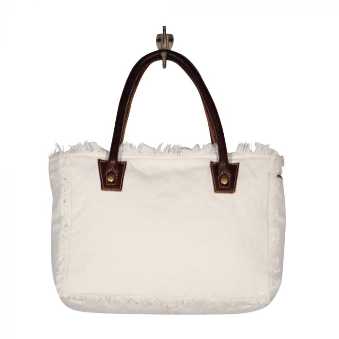 A white bag with trendy looks. This bag is a good choice if you want to make a style statement with an all weather bag. It is spacious, strong and has leather straps. Hold it as a bag or strap it as a crossbody bag. Your bag, your choice.
