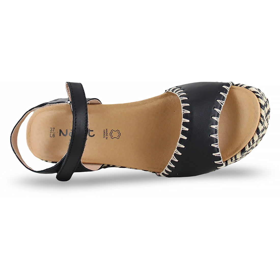 Introducing Blanes - where modern versatility meets timeless style. This sandal features a backstrap with a hook and loop closure, ensuring a secure and adjustable fit. Contrasting stitch accents add a touch of sophistication, making Blanes a standout choice for casual elegance. Perfect for everyday wear, Blanes combines comfort with understated chic for any occasion. Crafted with Naot's anatomic cork and latex footbed wrapped in smooth leather, these shoes mold to the shape of your foot with wear, ensuring personalized comfort. The Costal Collection's EVA sole offers the look of a 3-inch wedge without the discomfort, providing both style and stability with every step.