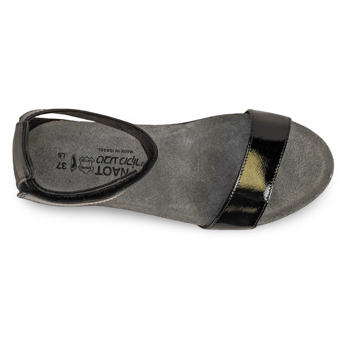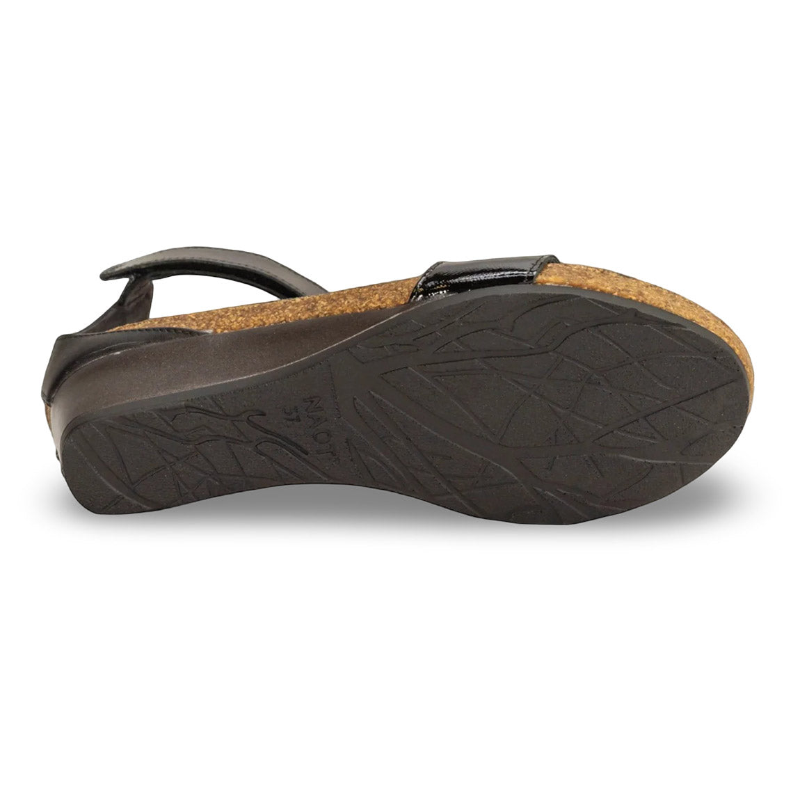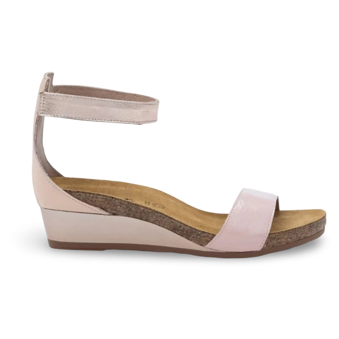 The Naot Pixie is a stylish wedge sandal with contrasting leathers. This style features a hook and loop ankle strap for stability. Naot's anatomic cork and latex footbed is wrapped in a pampering suede and molds to the shape of the foot with wear. Fit:True to size, half sizes should size up