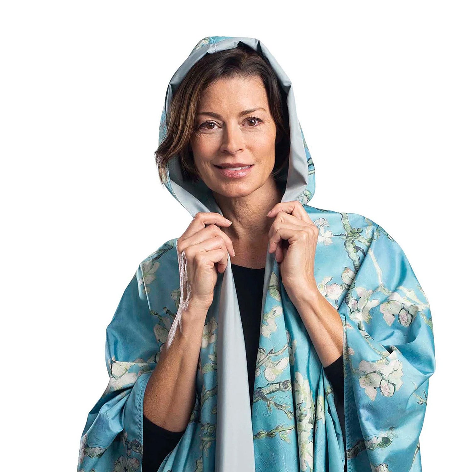 Vincent van Gogh was deeply influenced by an admiration for Japanese art; flowering trees were also special – to van Gogh they represented awakening and hope. He created Almond Blossom to celebrate the birth of his nephew and namesake, son of his brother Theo. Celebrate joy in any weather with a van Gogh Almond Blossom RainCaper. Wear the Bark side out as a chic neutral; reverse to van Gogh Almond Blossom print to brighten your day. Carefully adapted from the original oil painting, it is a must-have for museum patrons, day trippers and world travelers.