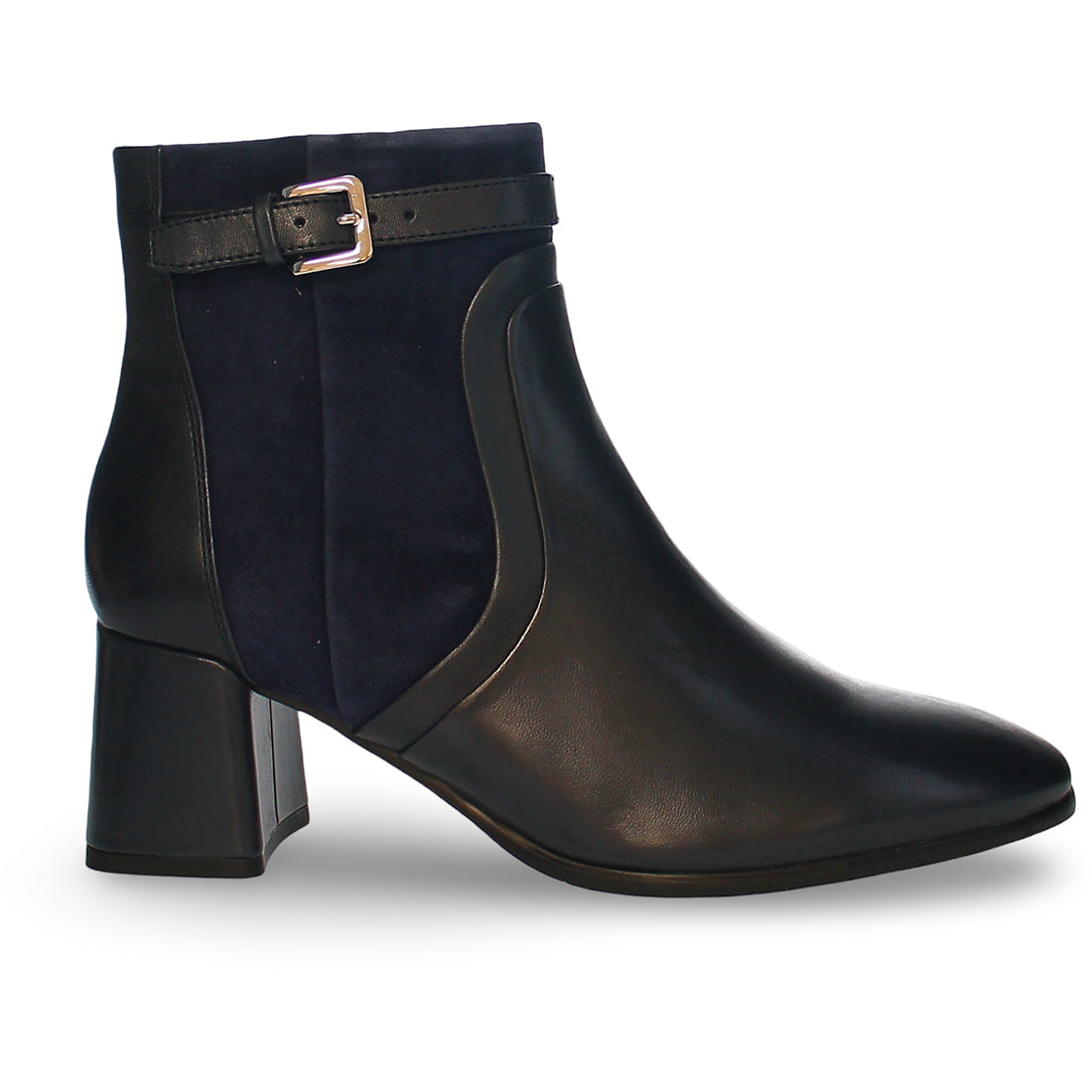 Crafted from Delice leather in Navy, the Millie ankle boot offers a sleek 60 mm heel and velvet lining with short hair fur for added comfort. An interior zipper allows easy fastening, while the covered heel and detailed stitching enhance its sophisticated look.