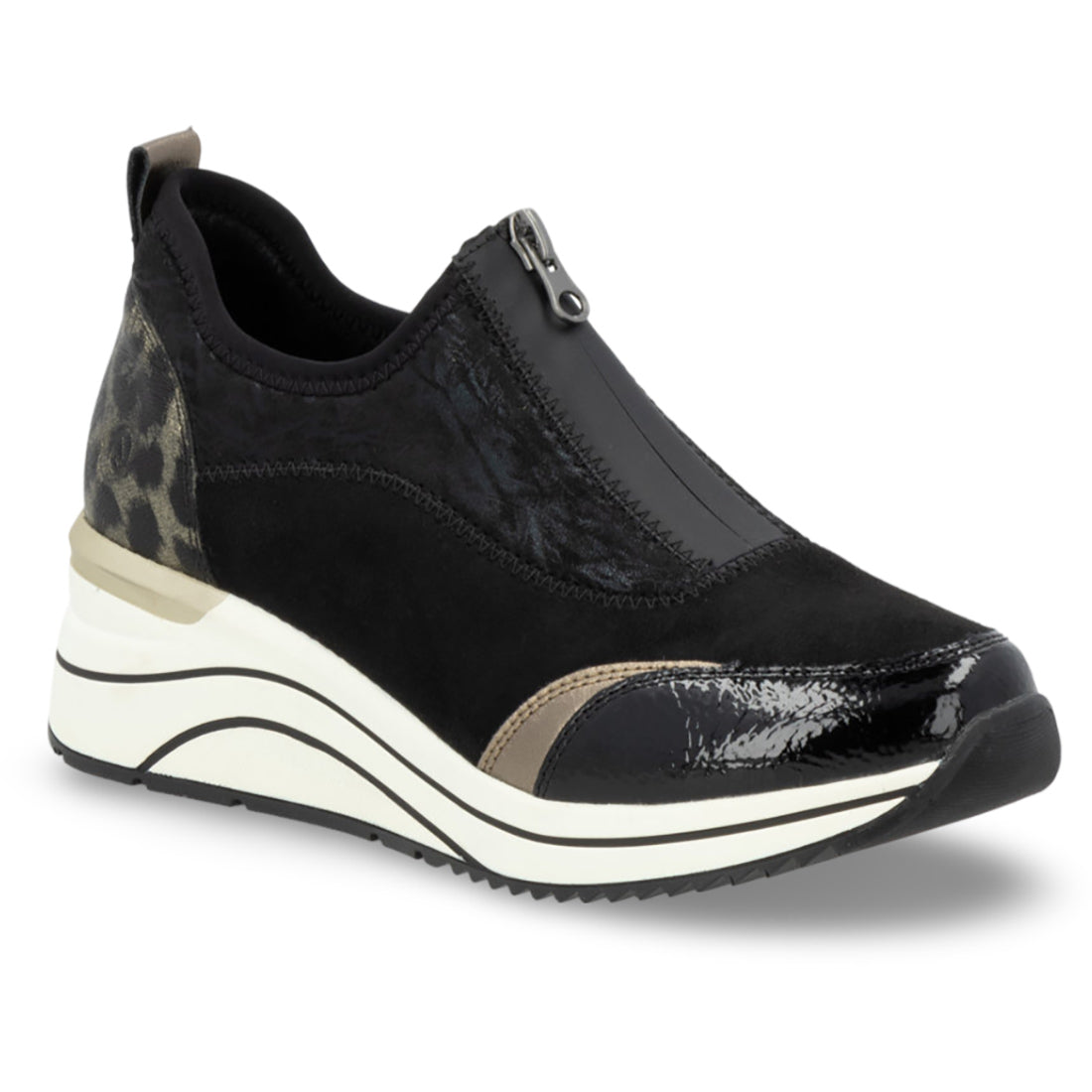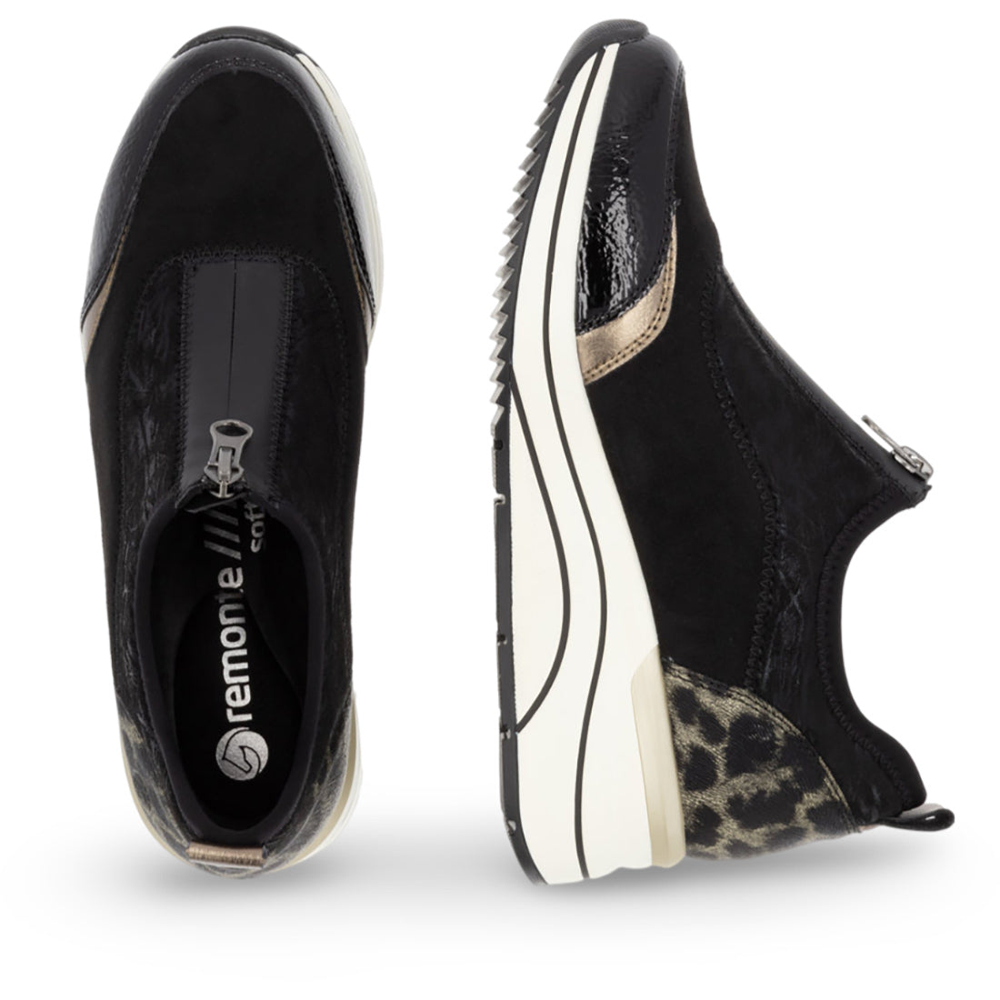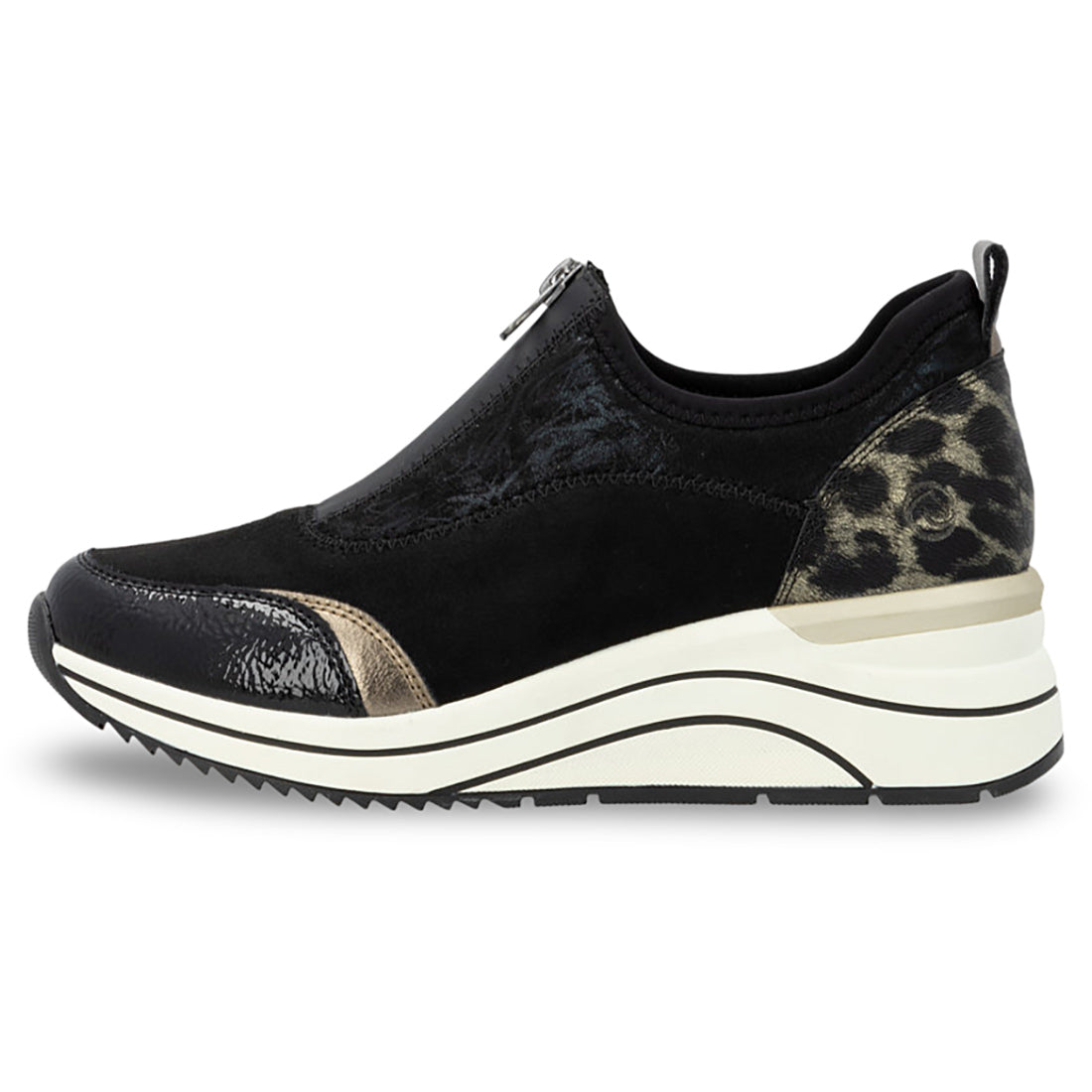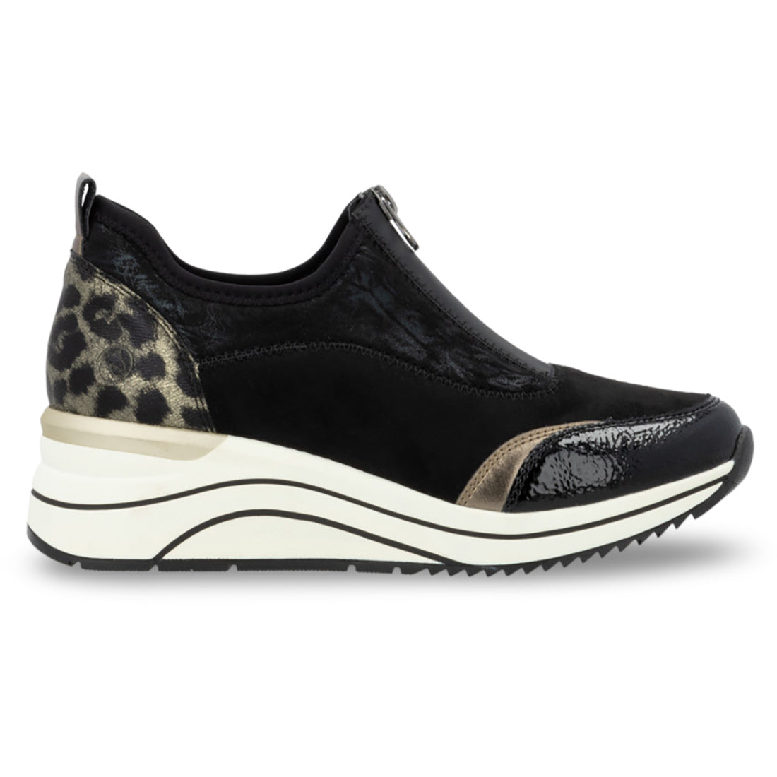 The Remonte D0T08-60 women's champagne casual shoe is a versatile and stylish option suitable for many occasions. These sneakers are easy to slip on with a front zip fastening and an elasticated shaft edge. The Lite 'n Soft technology integrates a super lightweight sole with a padded, removable insole for enhanced comfort. Designed with a sense of style, these ladies' vegan trainers are extra wide and available in oversizes to ensure a comfortable fit for all.