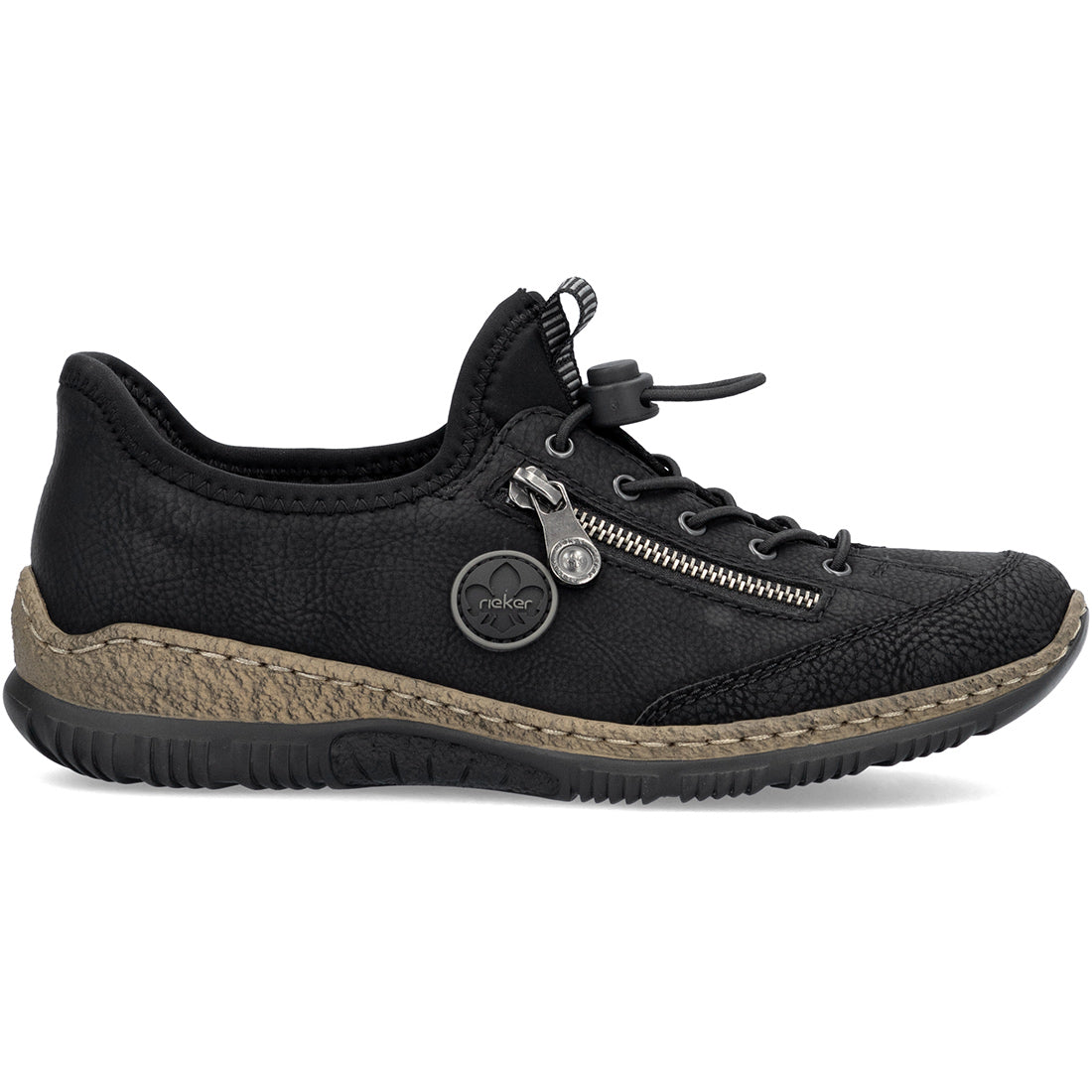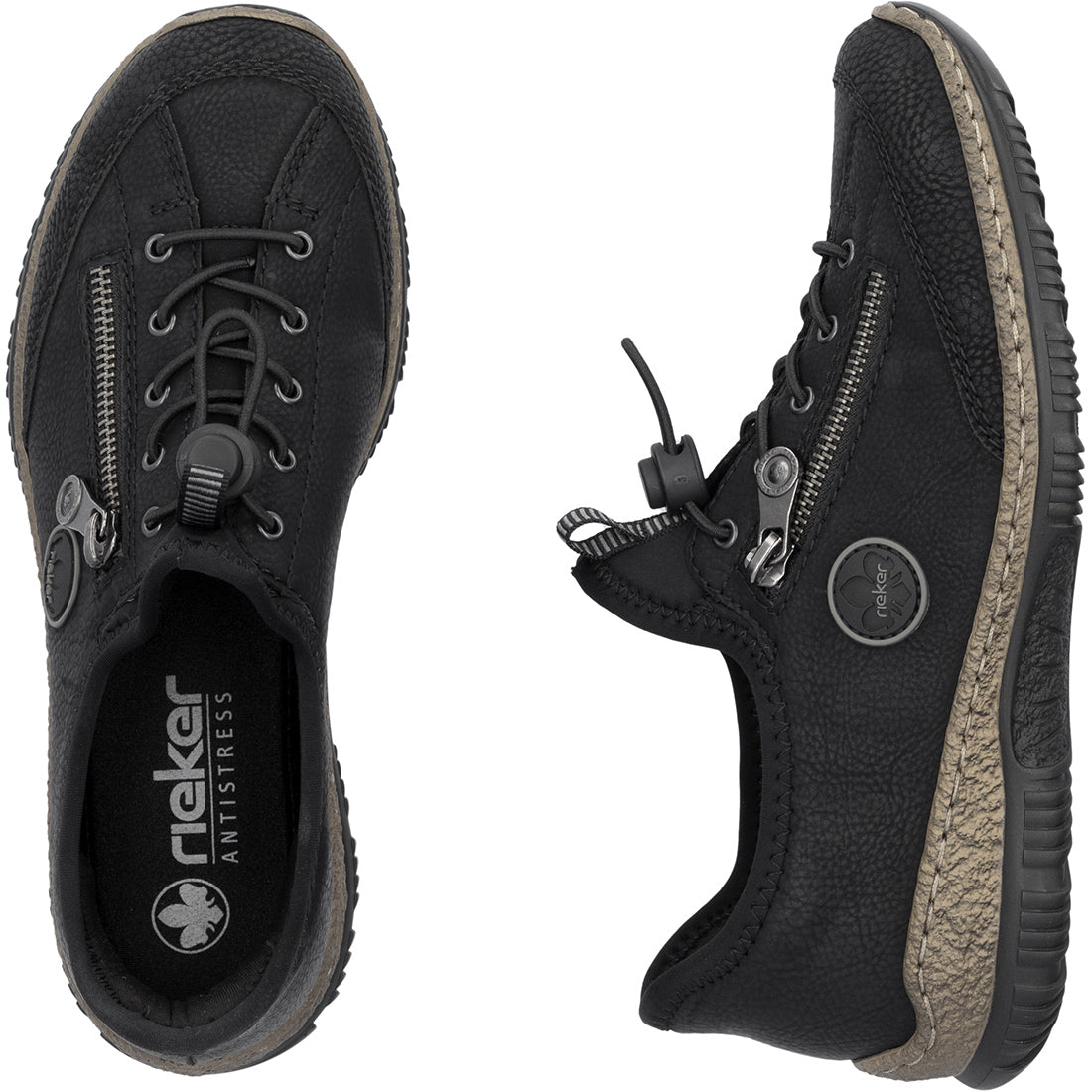 Fashionable must-have! These cool Rieker slippers score with a classic and sporty design. The traditional stitchdown construction makes the shoe particularly flexible and robust and ensures a great fit. In addition to the elastic lacing, the model has an elasticated shaft edge, making it twice as easy to put it on. The attached round logo on the side adds a fashionable touch to the design. With the shock-absorbing and light sole, your feet will enjoy the best walking comfort at every step. Another plus is the extra soft MemoSoft cover sole. Easy on, easy off - thanks to the Ready2GO slip-on feature, getting in and out is effortless.