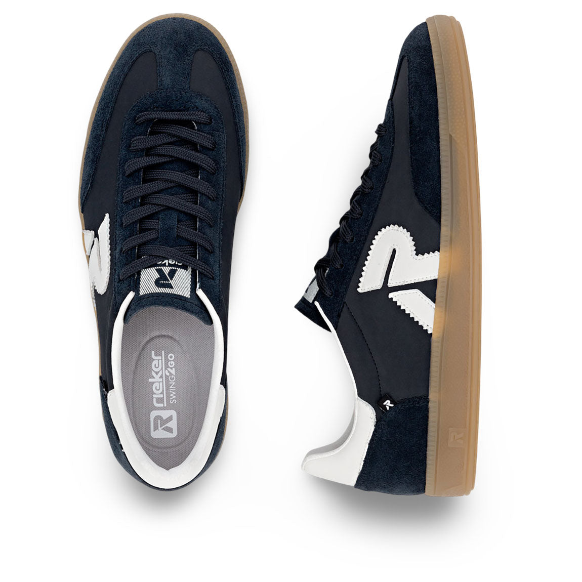 These Rieker low-top sneakers are made from high-quality smooth leather. The Swing2GO insole with arch support provides shock absorption and energy at each step. This model is available in men's and women's sizes. Good traction on various surfaces thanks to the wear-resistant and durable TR outsole. Light micro velour and synthetic leather lining. The comfort width guarantees a perfect fit.