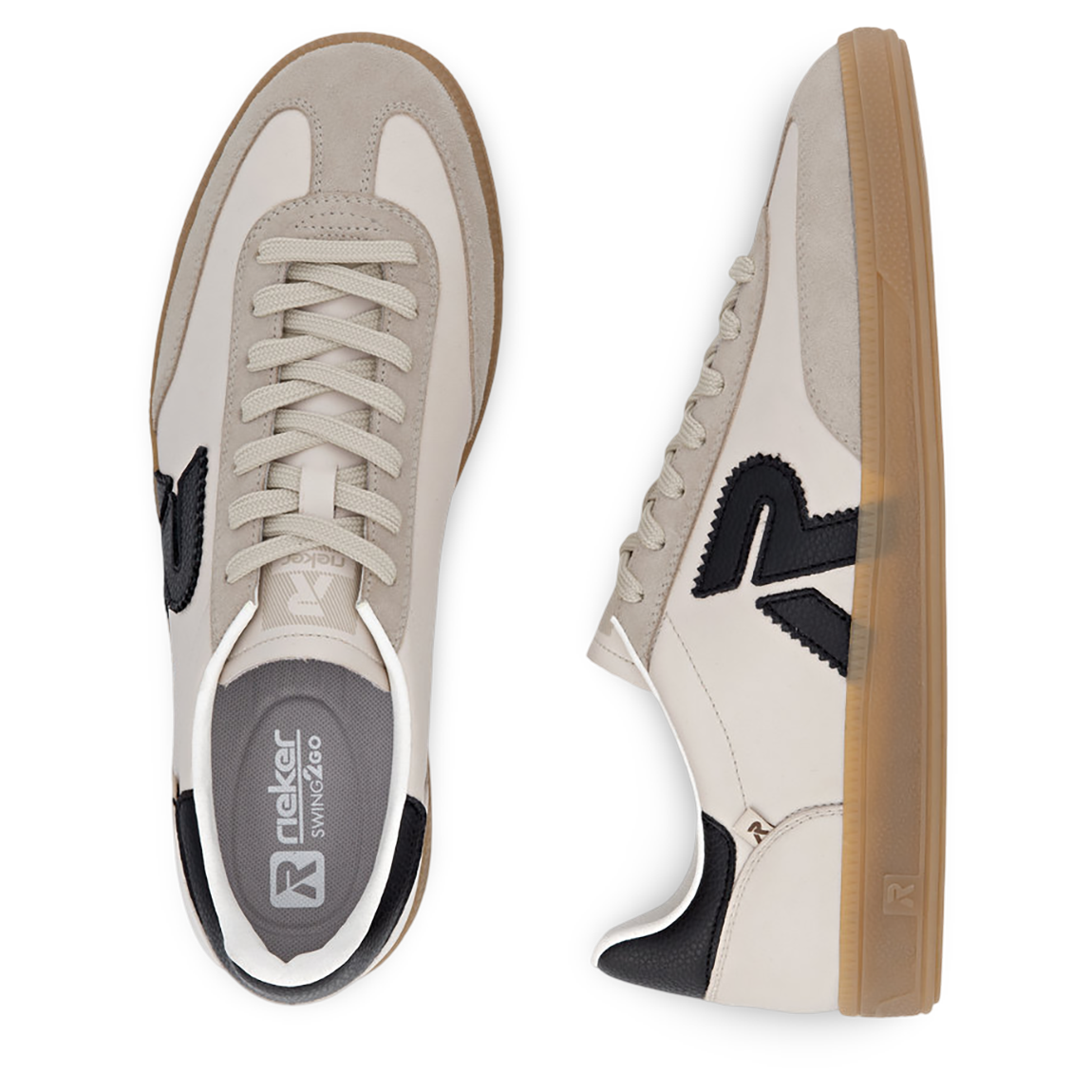These Rieker low-top sneakers are made from high-quality smooth leather. The Swing2GO insole with arch support provides shock absorption and energy at each step. This model is available in men's and women's sizes. Good traction on various surfaces thanks to the wear-resistant and durable TR outsole. Light micro velour and synthetic leather lining. The comfort width guarantees a perfect fit.