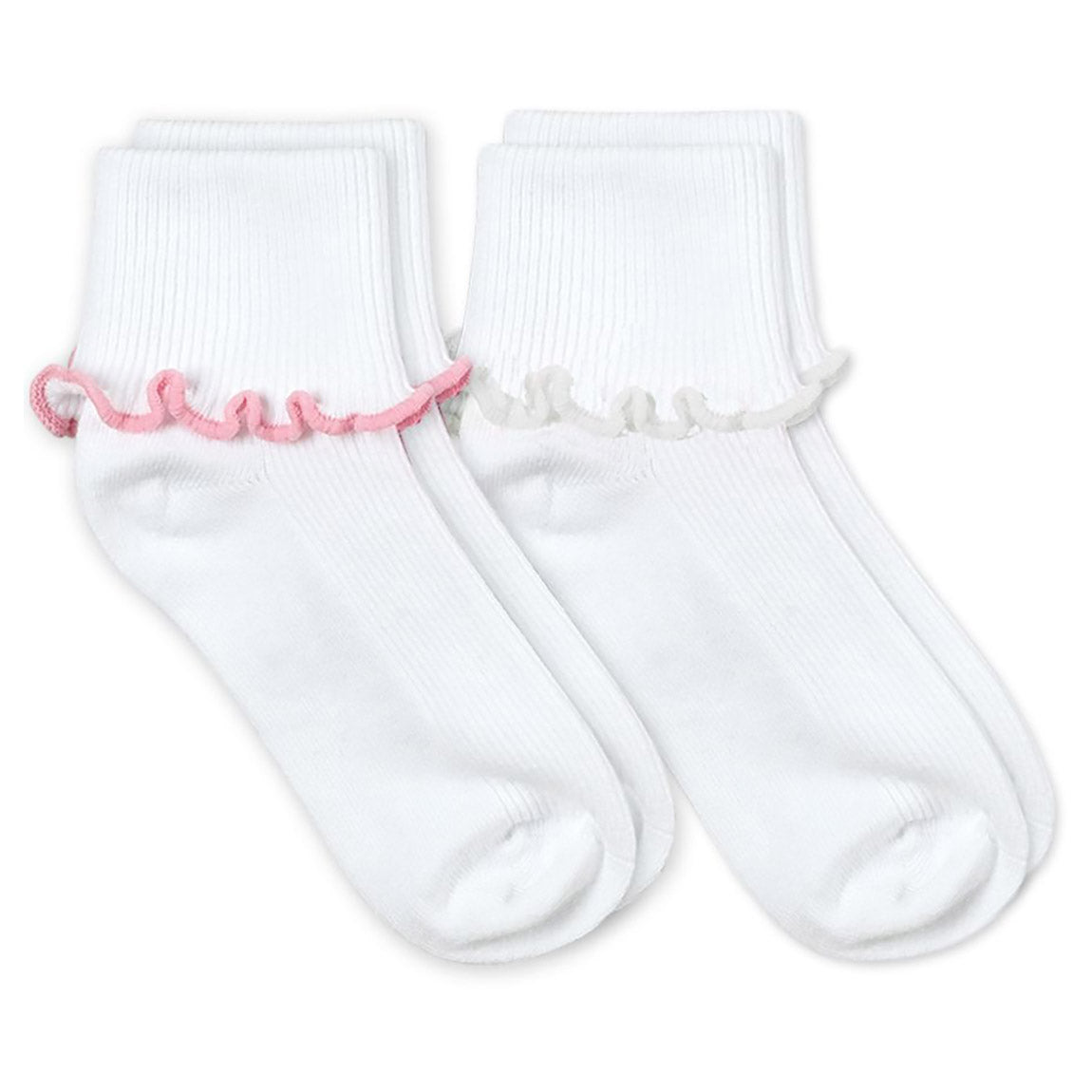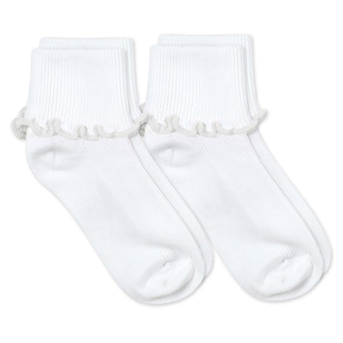Girls classic turn cuff socks with a ripple edge accent on the edge of the turn cuff. Can be worn cuffed or uncuffed. Rib pattern on cuff and top of foot. Perfect for school, dressing up, pairing with mary janes and much more! Comes in a range of sizes to fit a MERGEborn baby, infant, toddler all the way up to big girl sizes. Size large fits womens shoe size 6-9.