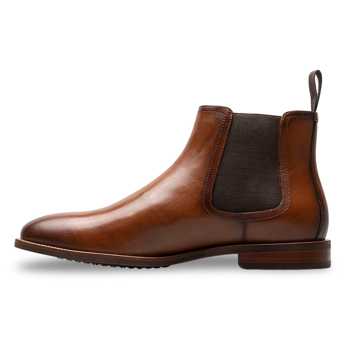 The Florsheim Rucci Plain Toe Gore Boot features a smooth leather upper and a modern stacked heel. Inside, the Suedetec linings and cushioned footbed add all-day comfort to its seven-day-a-week versatility.