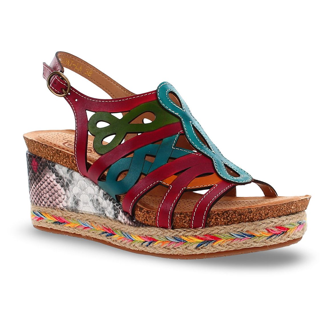 Step into style with the Saloni—a vibrant gladiator sandal that brings the fun. This padded wedge heel features a colorful back strap secured with a buckle, delivering both comfort and personality. Perfect for adding a pop of color to your everyday look while keeping your feet happy all day long.