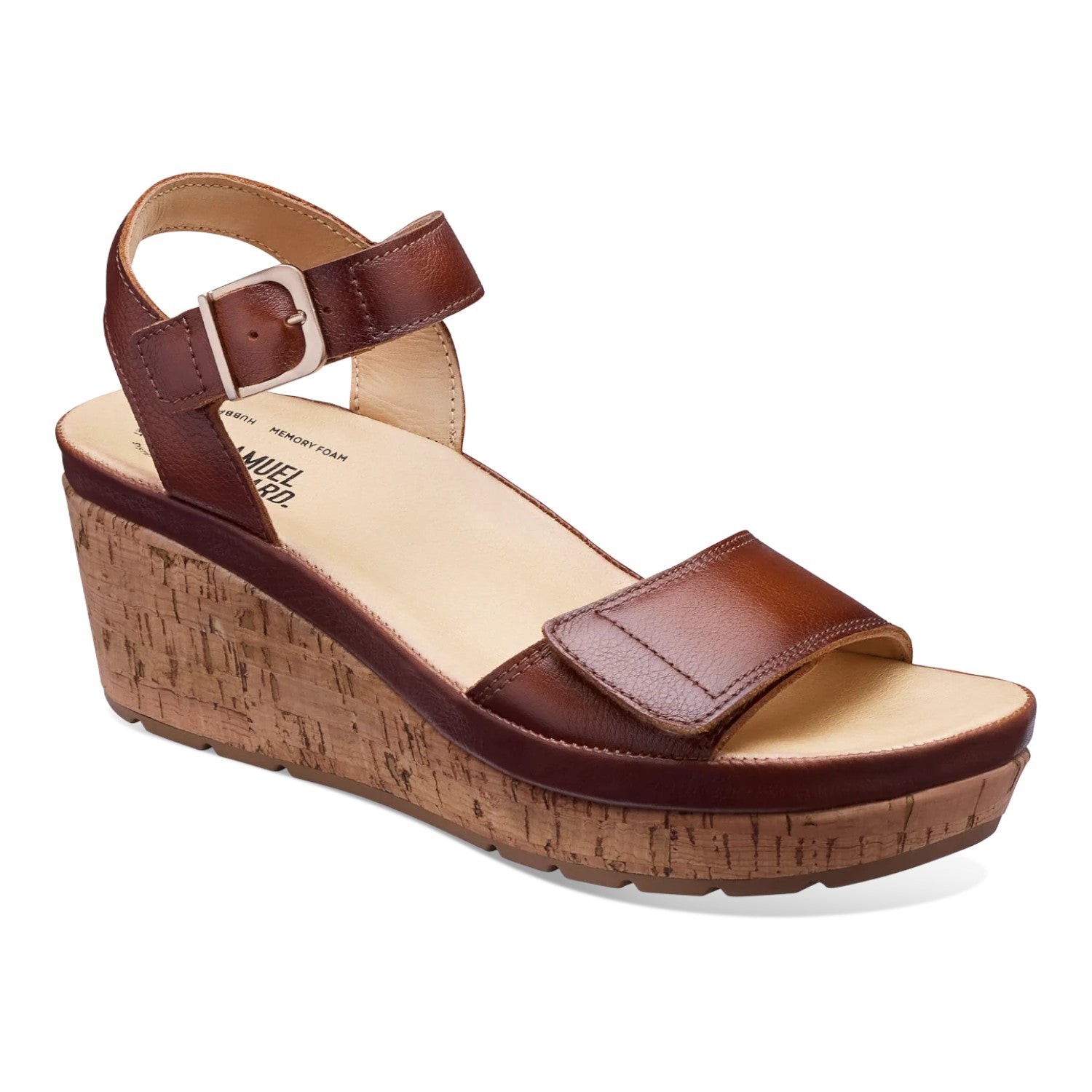 Crafted with premium leather uppers and fully adjustable hook-and-loop straps, the Portola Wedge offers a secure, customizable fit. An anatomically molded footbed paired with memory foam cushioning provides personalized comfort, while the flexible wedge construction delivers both stability and style. Designed with shock-absorbing support, this sandal helps reduce impact for smoother, more comfortable steps.