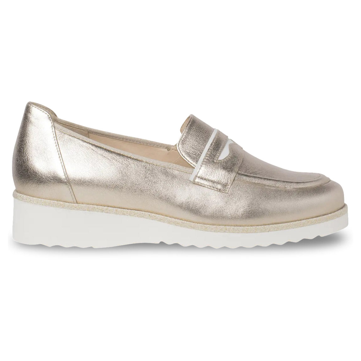 The SEVILLA loafer impresses with its sporty-smart silhouette. The small heel adds a feminine touch, while the subtle trim brings a modern flair to the light sole design. The metallic shiny Perlato leather is complemented by a simple decoration. Hidden beneath are elastic inserts that contribute to the excellent fit. Combined with the soft leather lining, the loafer offers first-class comfort. Invest in a classic – the SEVILLA will accompany you as a smart all-rounder in the city, at the office, and on vacation.