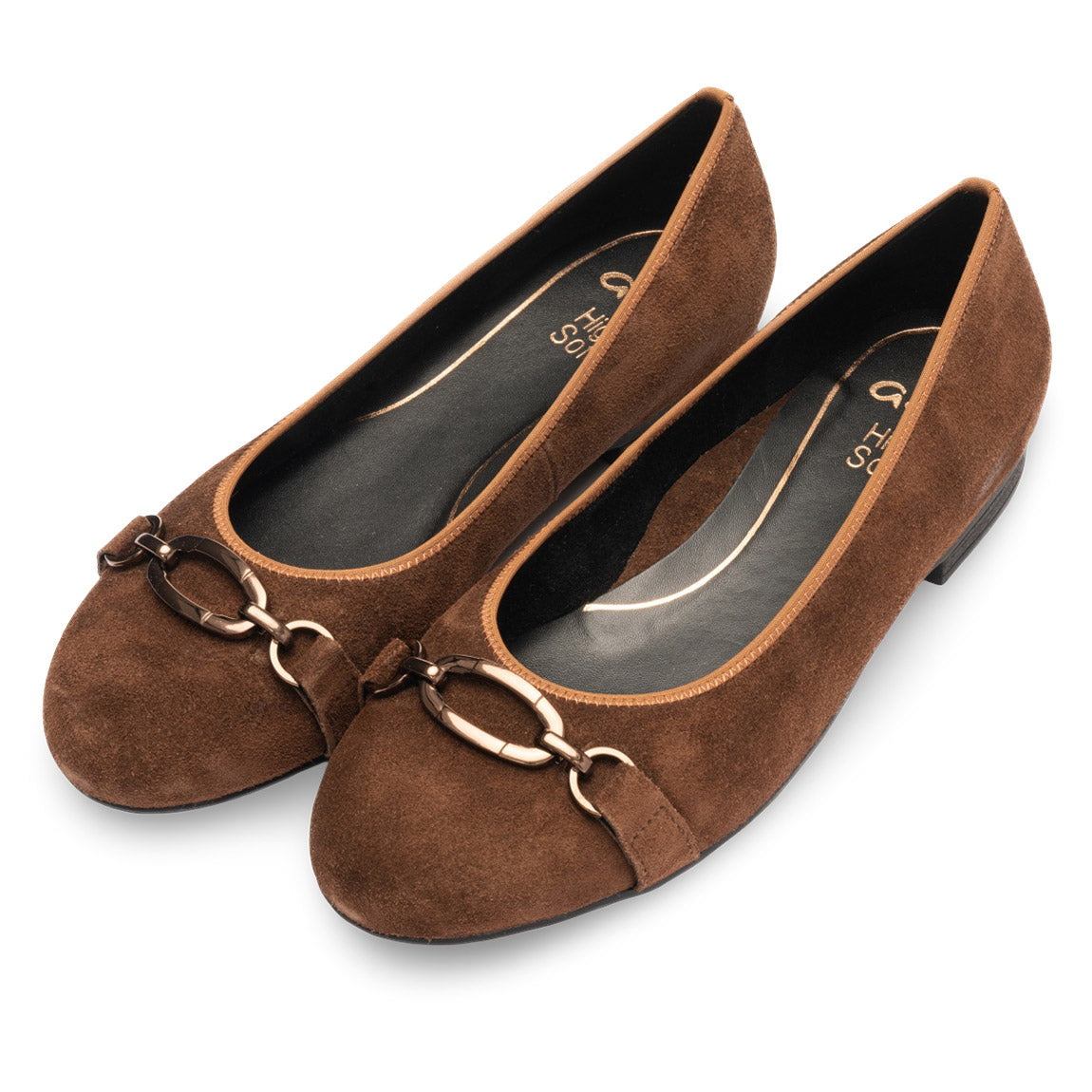 The Siene ballet flat sparkles with shiny bit hardware on a sleek profile. It boasts HighSoft cushioning that hugs your foot with built-in arch support for all-day comfort and balance. Featuring a plush footbed, plus leather upper, lining, and sole, it’s the perfect mix of style and cozy vibes.