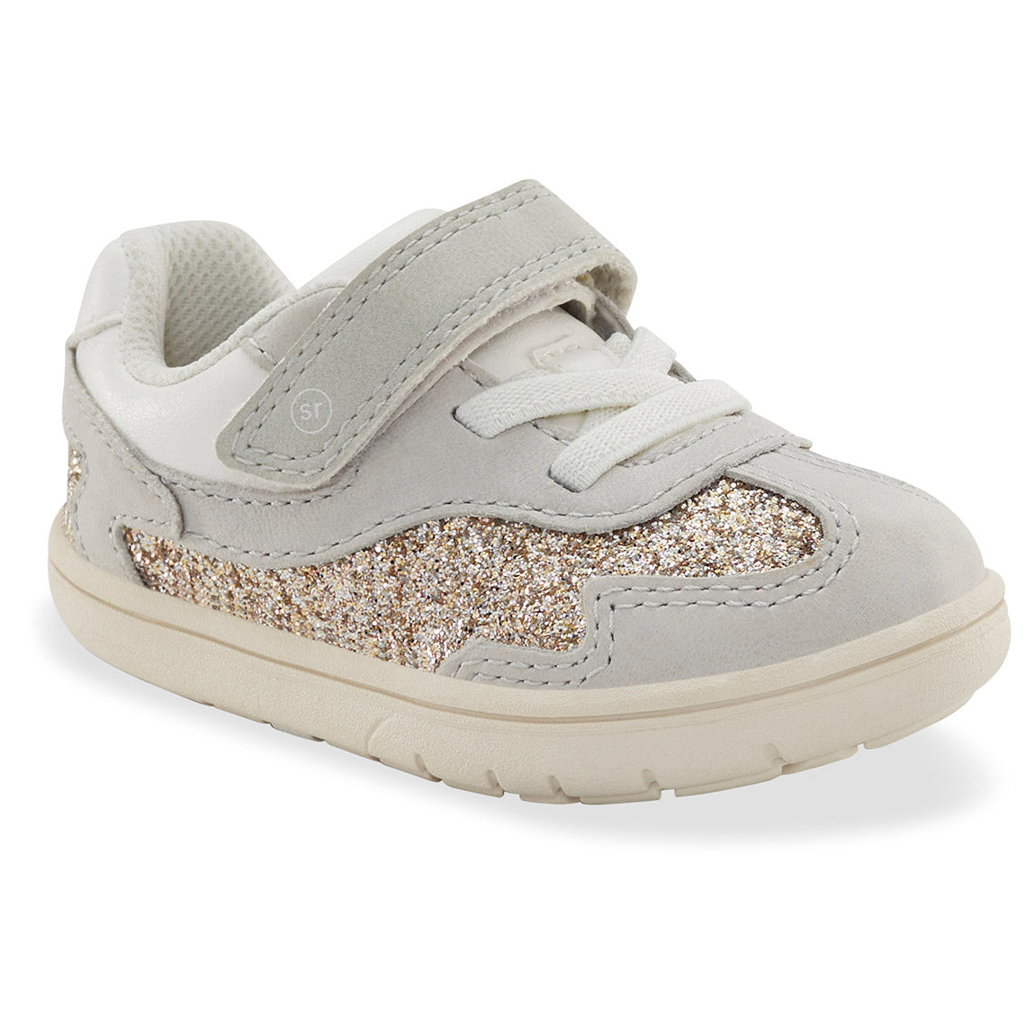 Let your little one step into style and comfort with Stride Rite SRT Arlo Shoes. The APMA-approved, slip-on style shoes are designed with a leather upper with shimmery details on the side panel, cotton lining, and a comfortable Ortholite Memory Foam insole. The lace-up closure and hook-and-loop strap ensure a custom fit. ; Round toe shape. ; Rubber outsole.