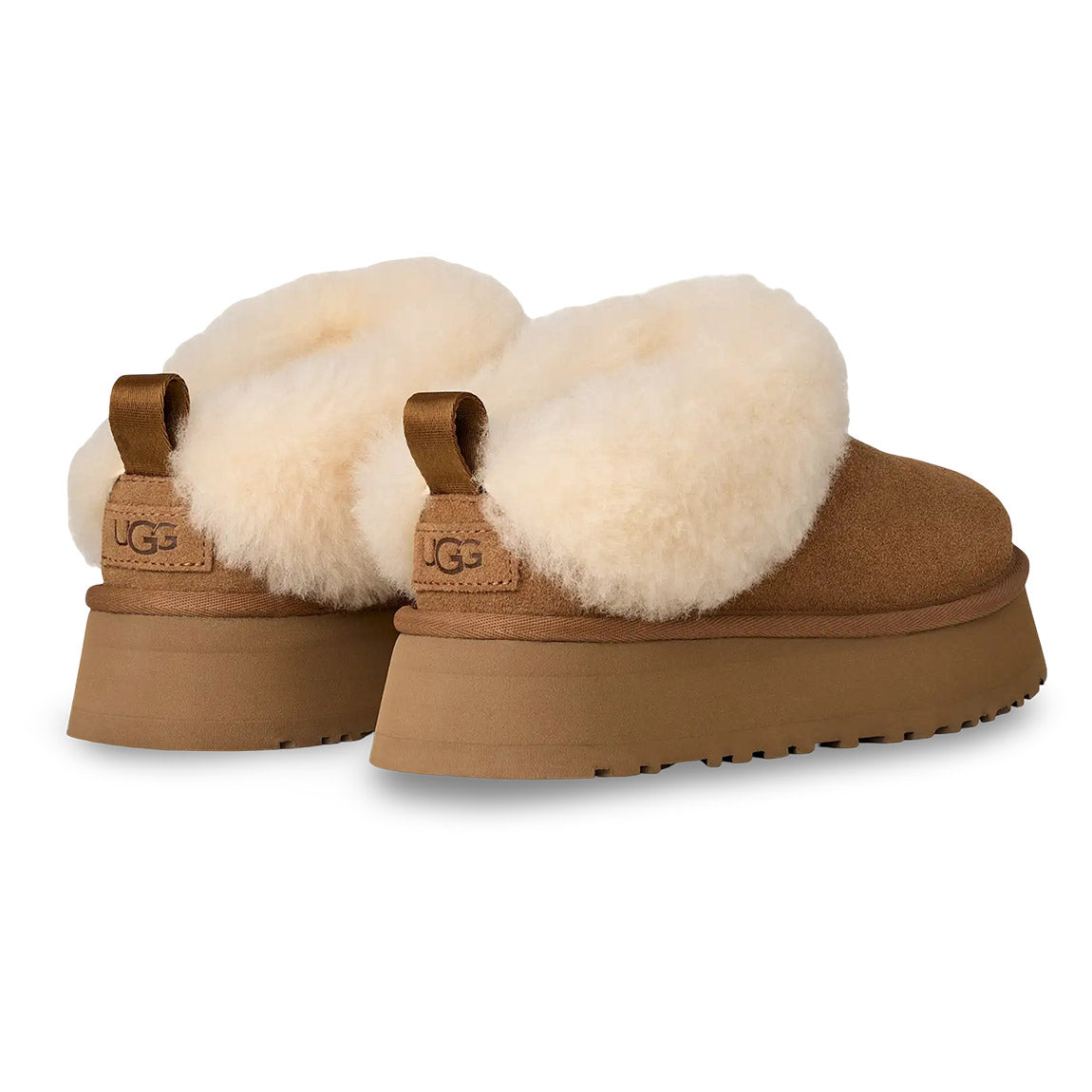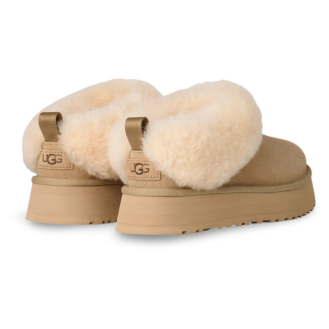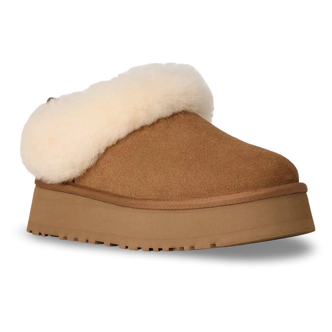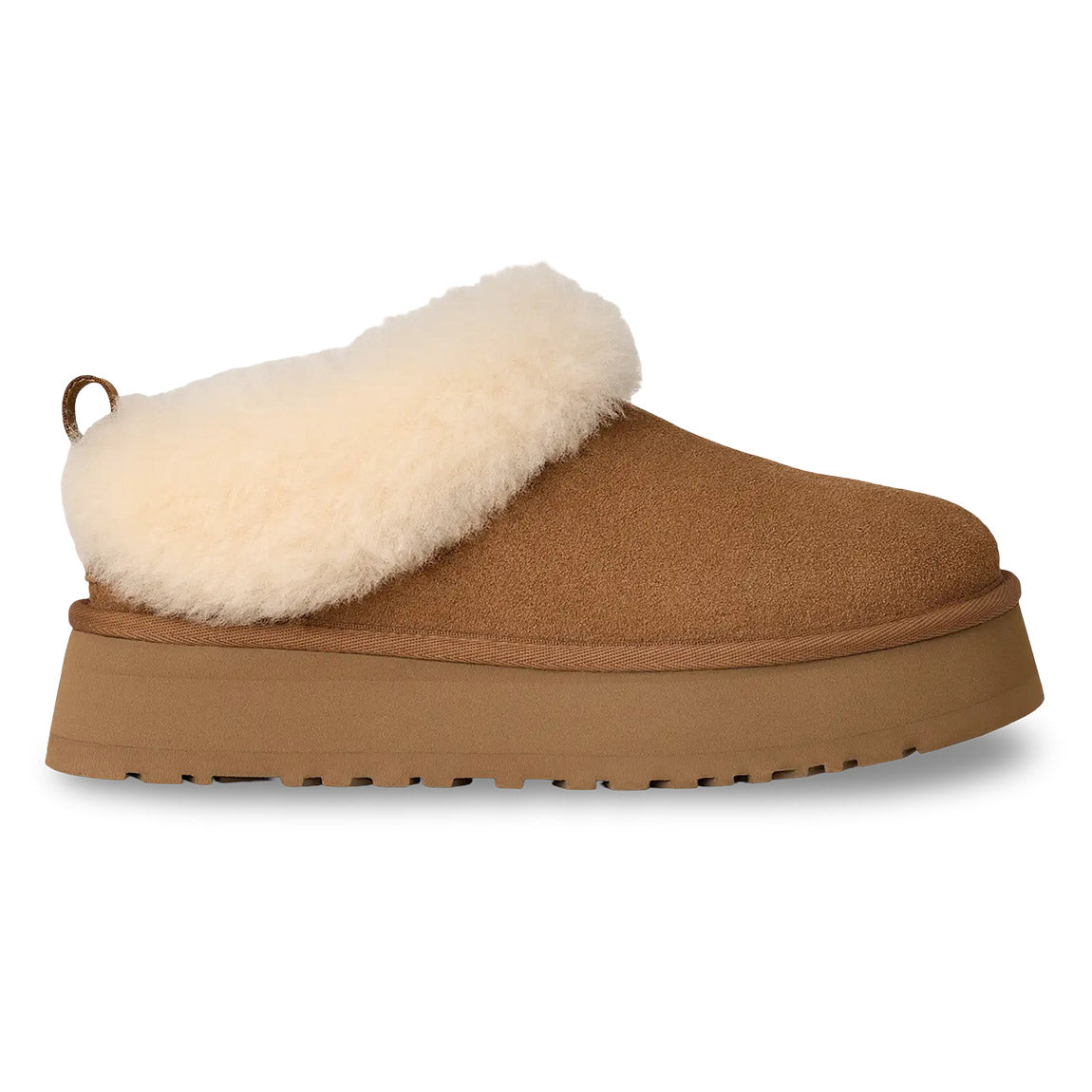 Love the Tazz but want even more UGG® coziness? Our Tazzelle is the one for you. This ultra-plush indoor-outdoor slipper features genuine suede and a lightweight 1.75" platform made from springy sugarcane EVA. Sheepskin lines the interior and continues onto the lush fixed cuff, so you can wear these with socks, or without.