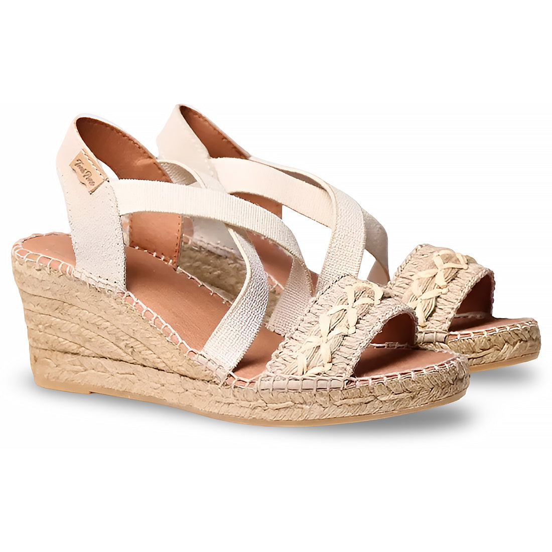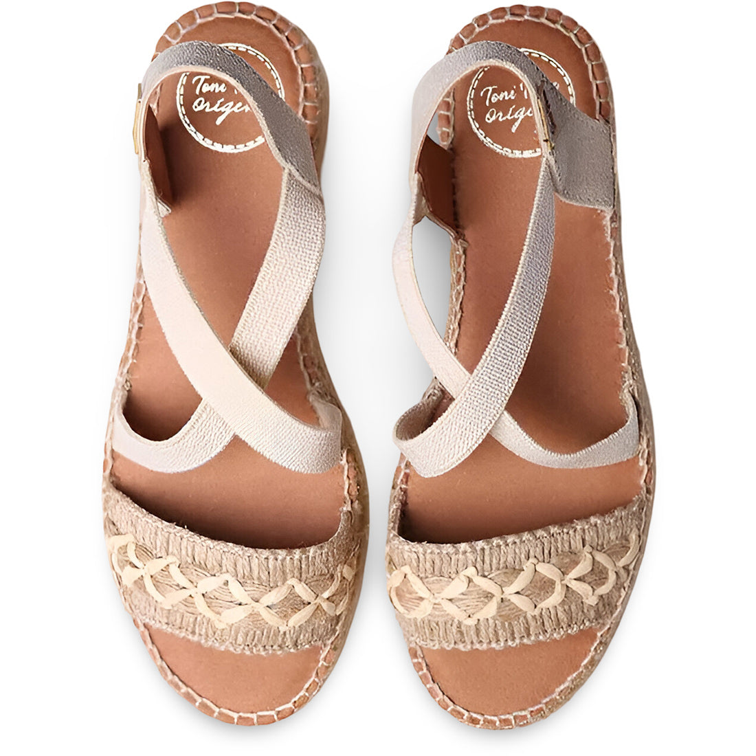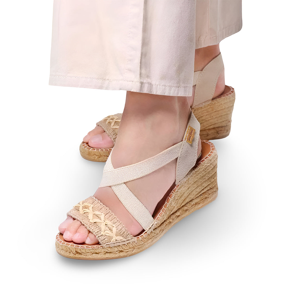 This jute wedge sandal stands out for its comfort. It has two crossed elastic straps on the top of the foot that provide excellent support and stability. It has an original design made with jute on the front strap. A very fresh and versatile model for your day-to-day.