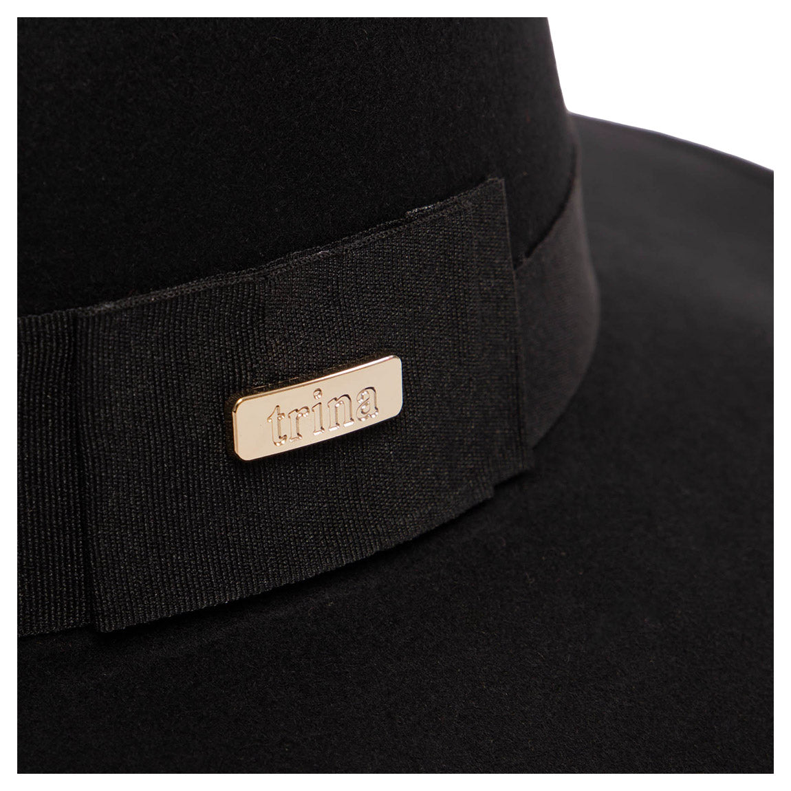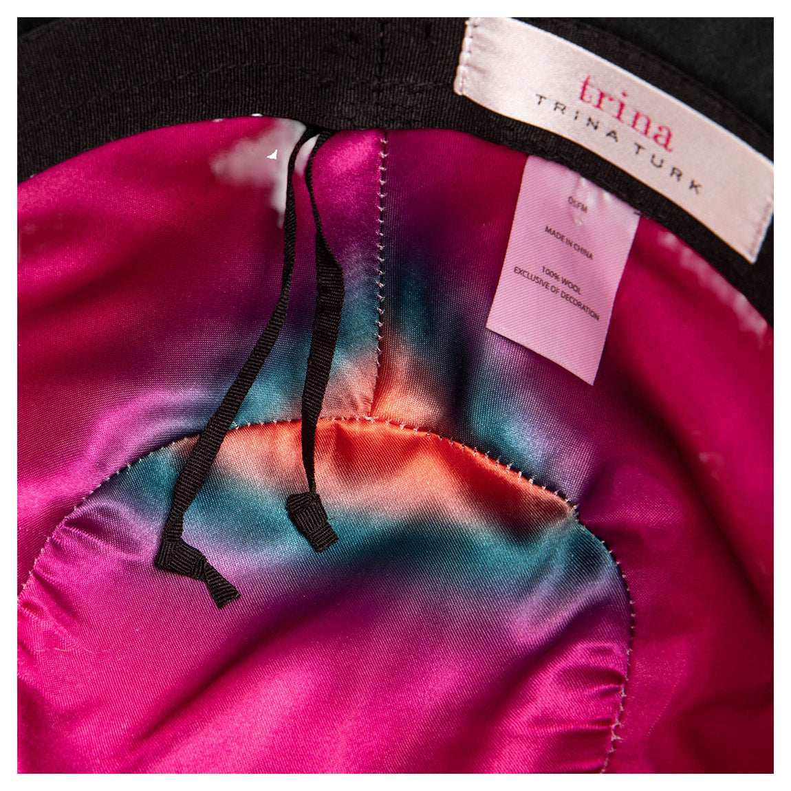 Elevate your style with the Candace Round Crown by Trina Turk. Available in black or rust, this 100% faux felt hat features a 4.25" brim, grosgrain ribbon trim and brim binding, and a satin lining. The metal logo plaque adds a touch of sophistication, while the adjustable sizing ensures a perfect fit.